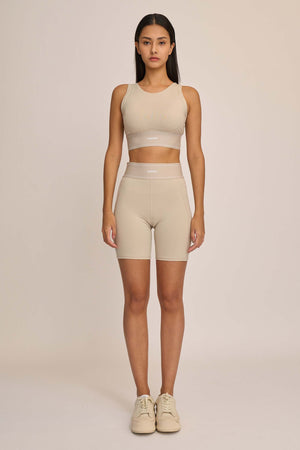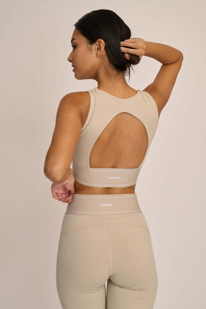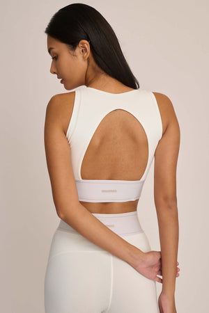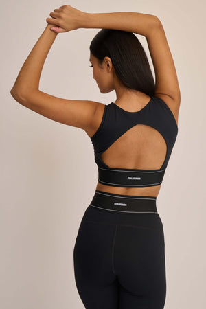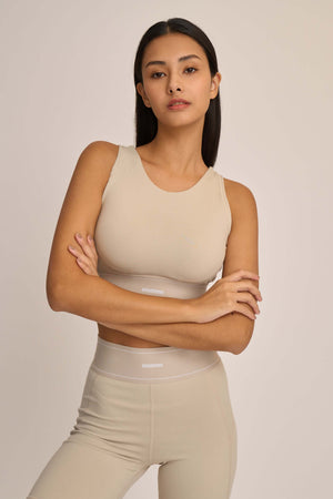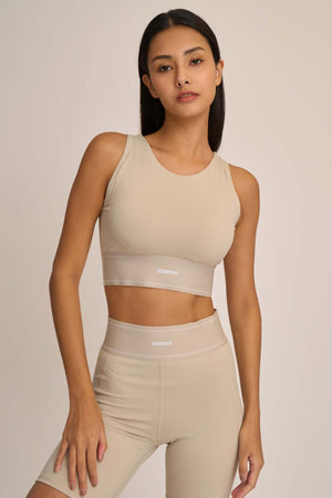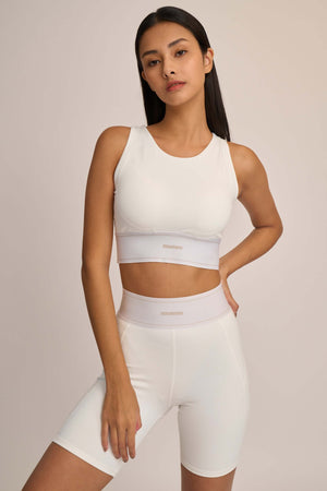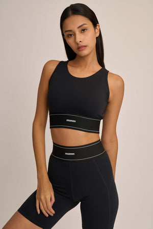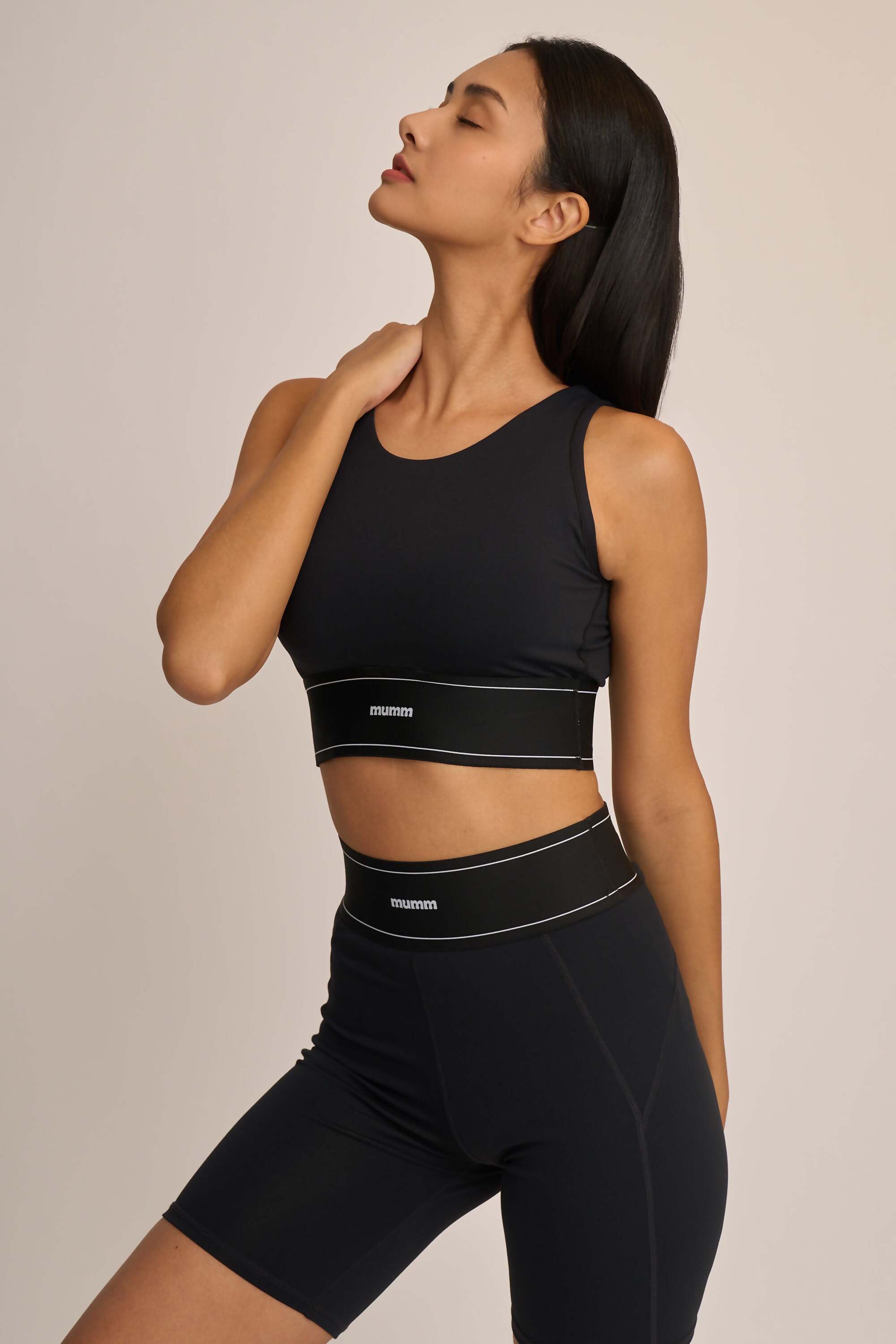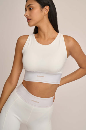 高彈 7cm 寬織帶包覆挖背 BraTop,「ELASTIC 高彈系列」採用特殊紗線材質,做出仿棉⼿感,面料厚實,彈性舒適,吸濕排汗,減少皮膚過敏可能性,特殊車縫增加阻力、止滑、平整,下擺寬織帶設計,增加穩定性,適合低強度運動。