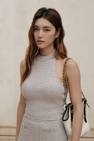Afternoon Walk Cable Knit Halter Neck Bra Top