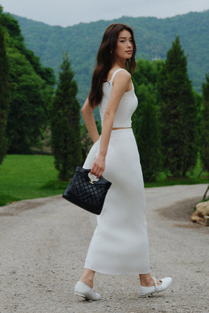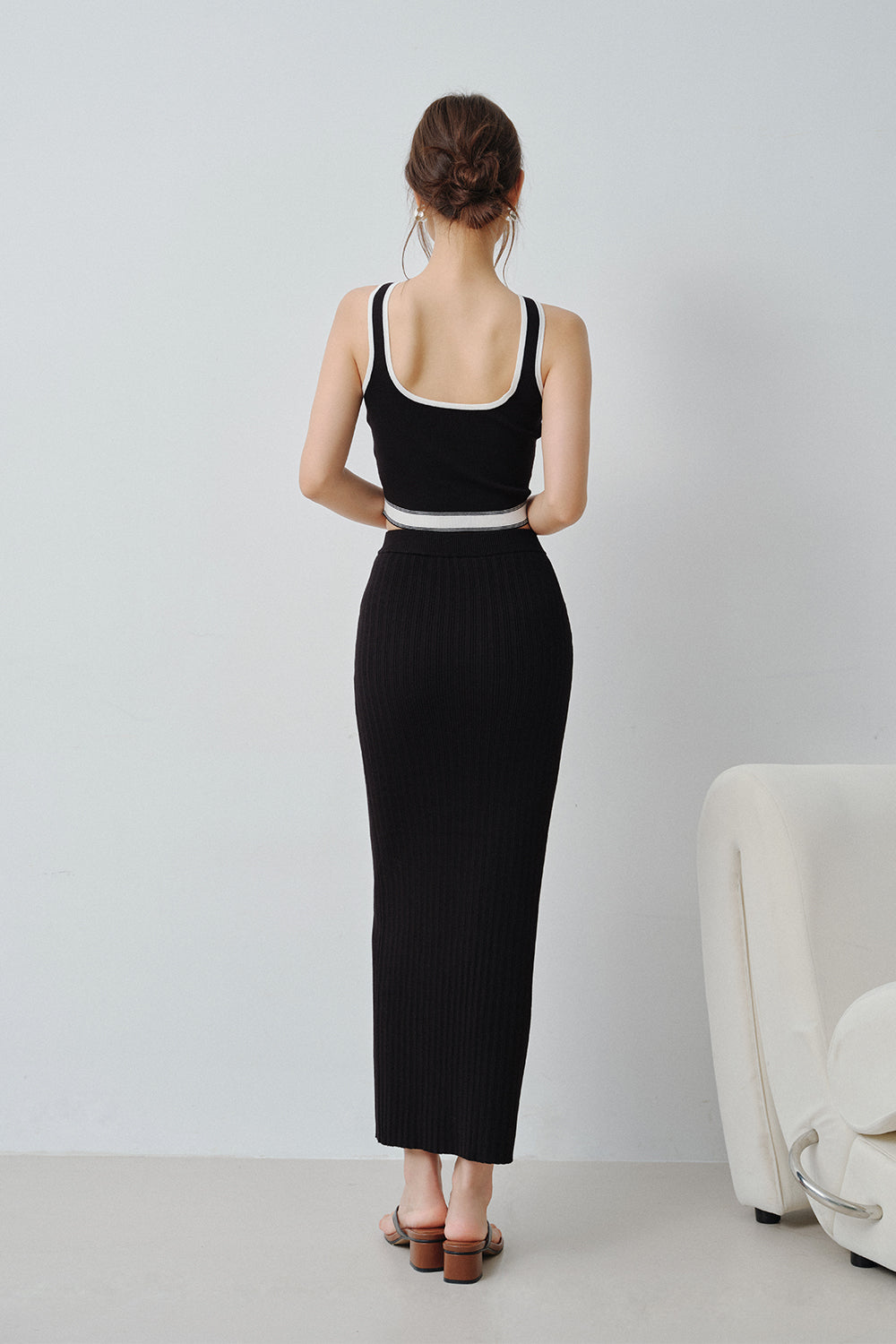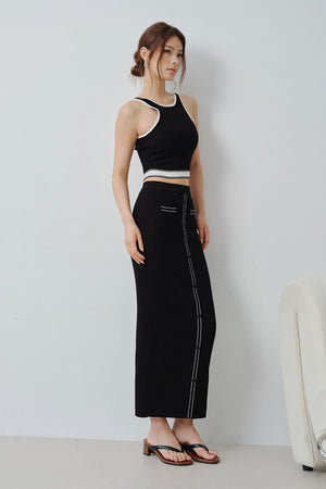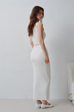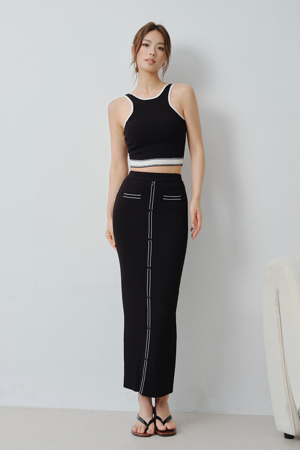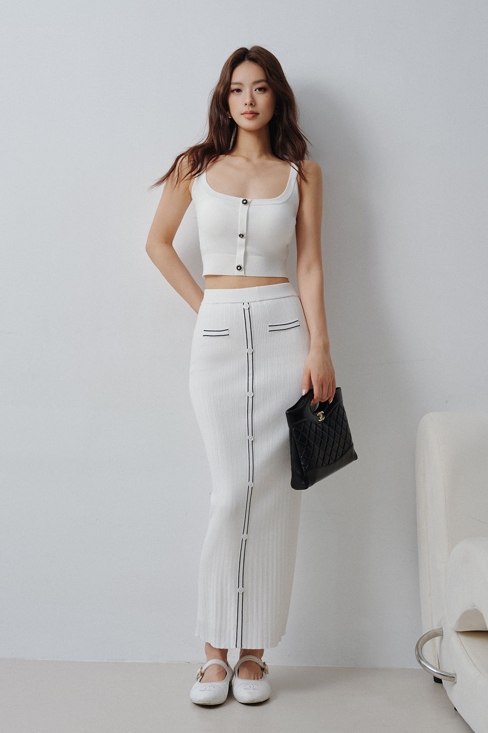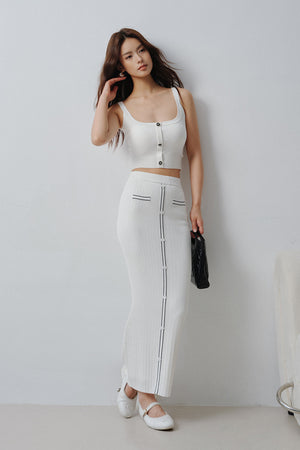Afternoon Walk Fine Ribbed Knit Button-Front Maxi Skirt