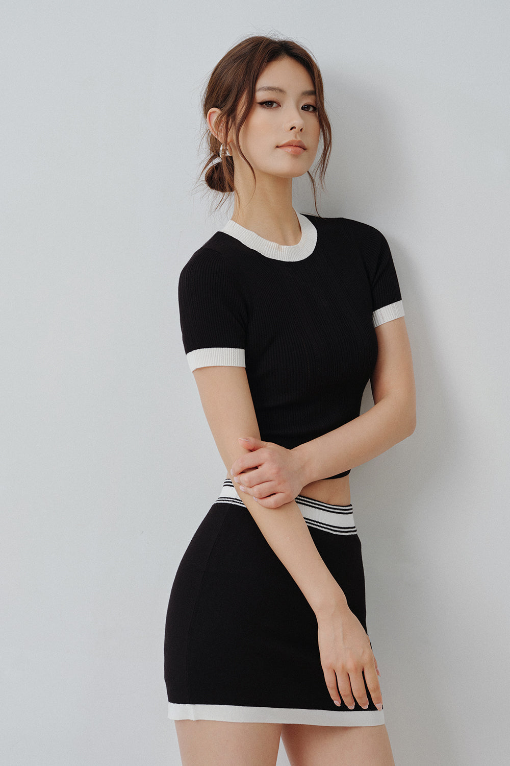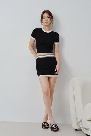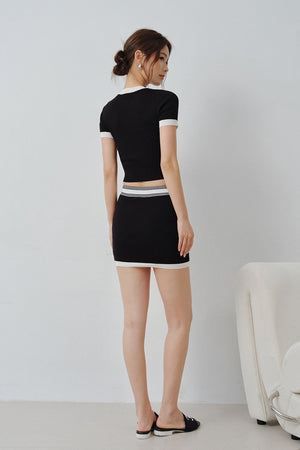 Afternoon Walk Fine Ribbed Knit Contrast Color Short Sleeve Top
