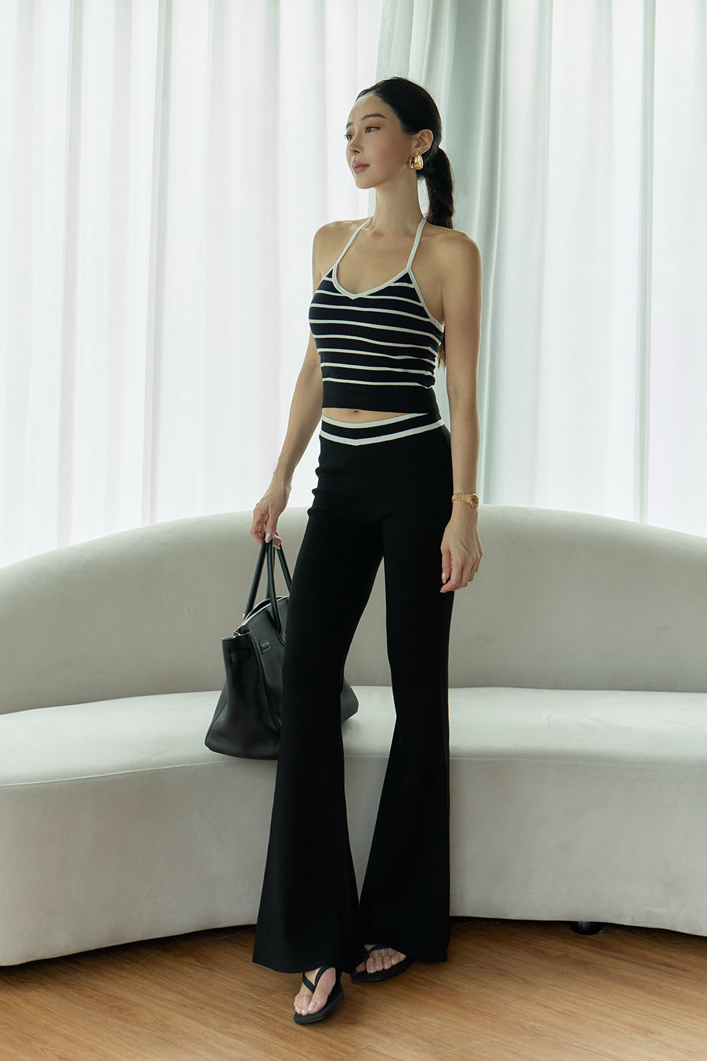 Afternoon Walk Fine Ribbed Knit Contrast Trim Flared Pants