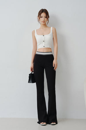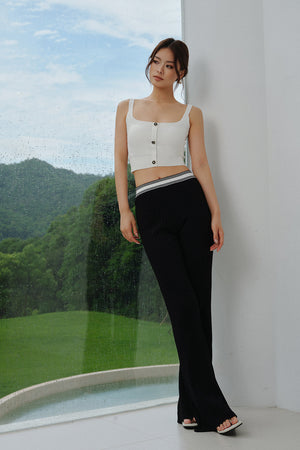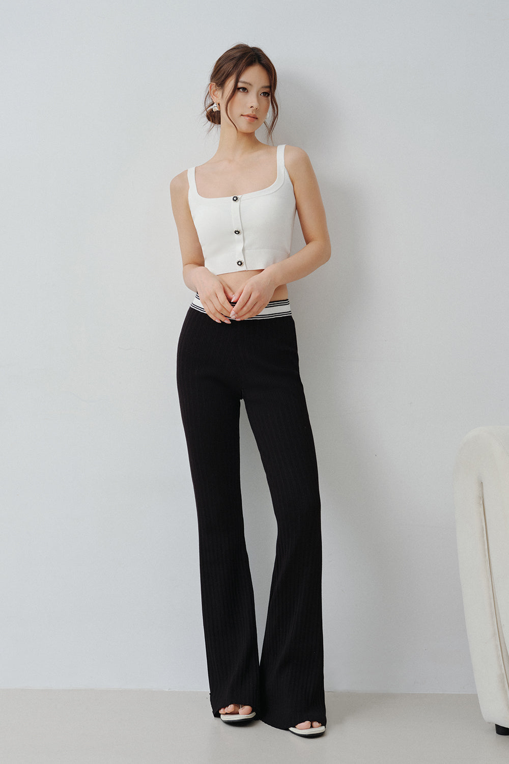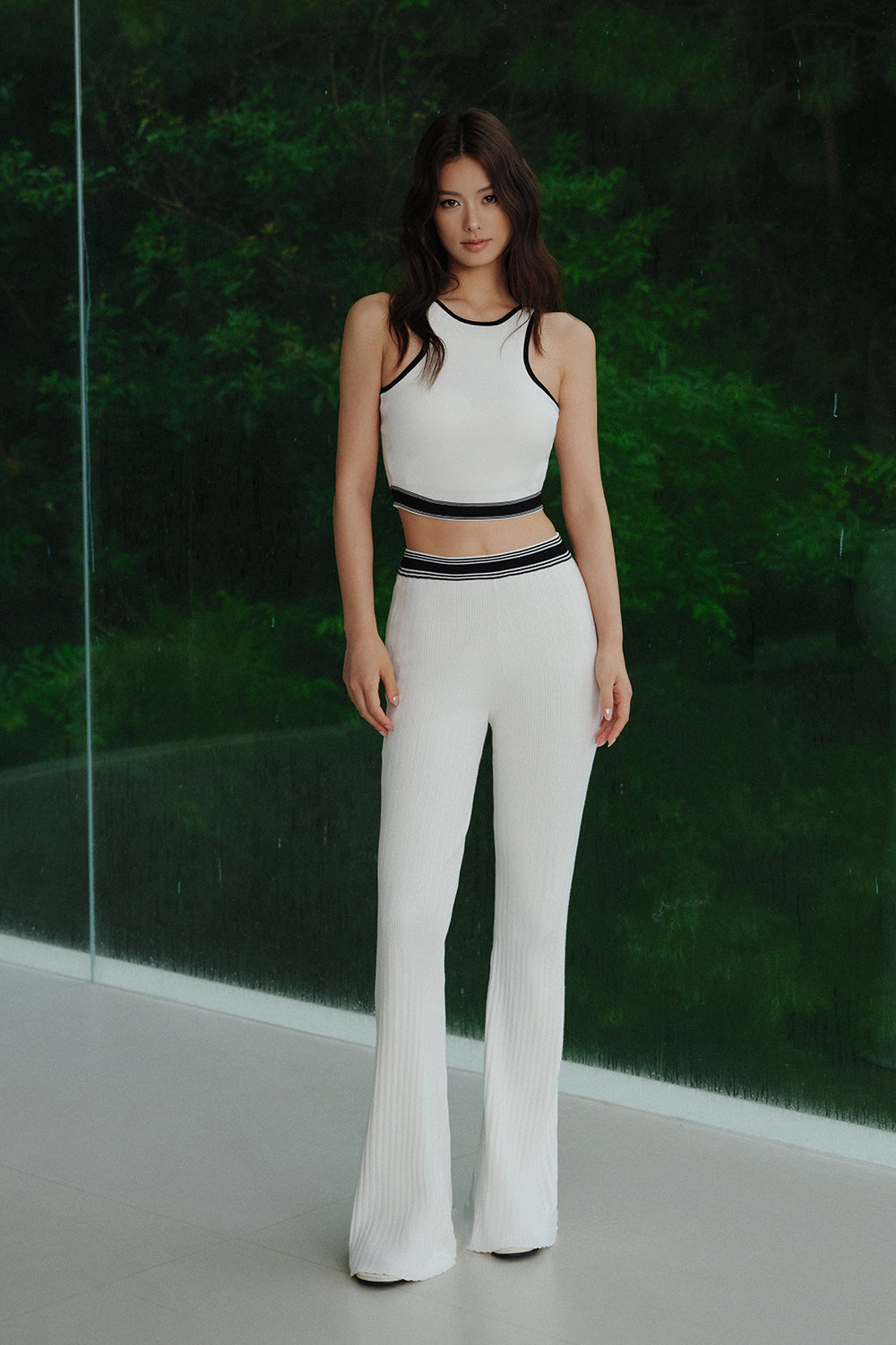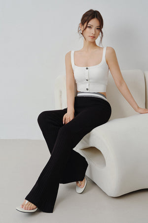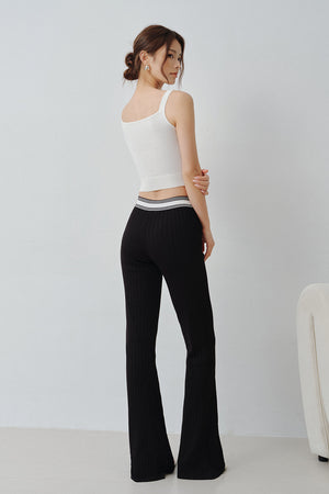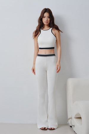 Afternoon Walk Fine Ribbed Knit Flared Pants