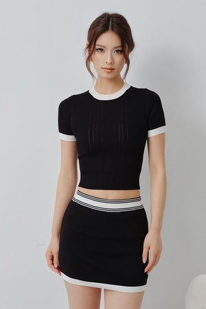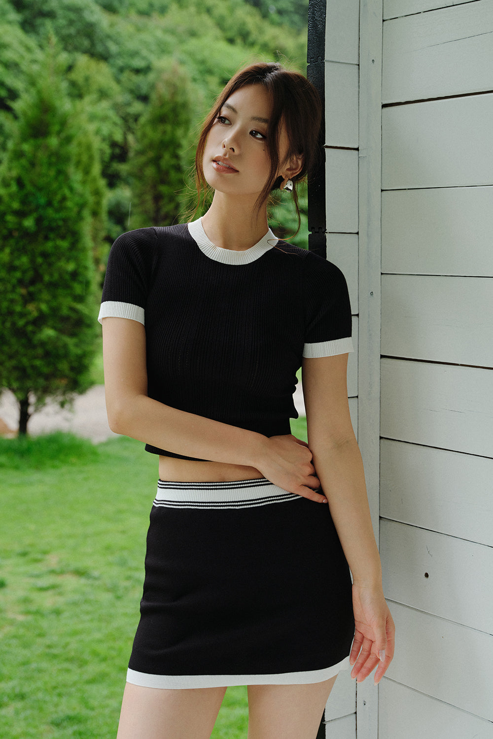 Afternoon Walk Knit Contrast Trim Mini Skirt