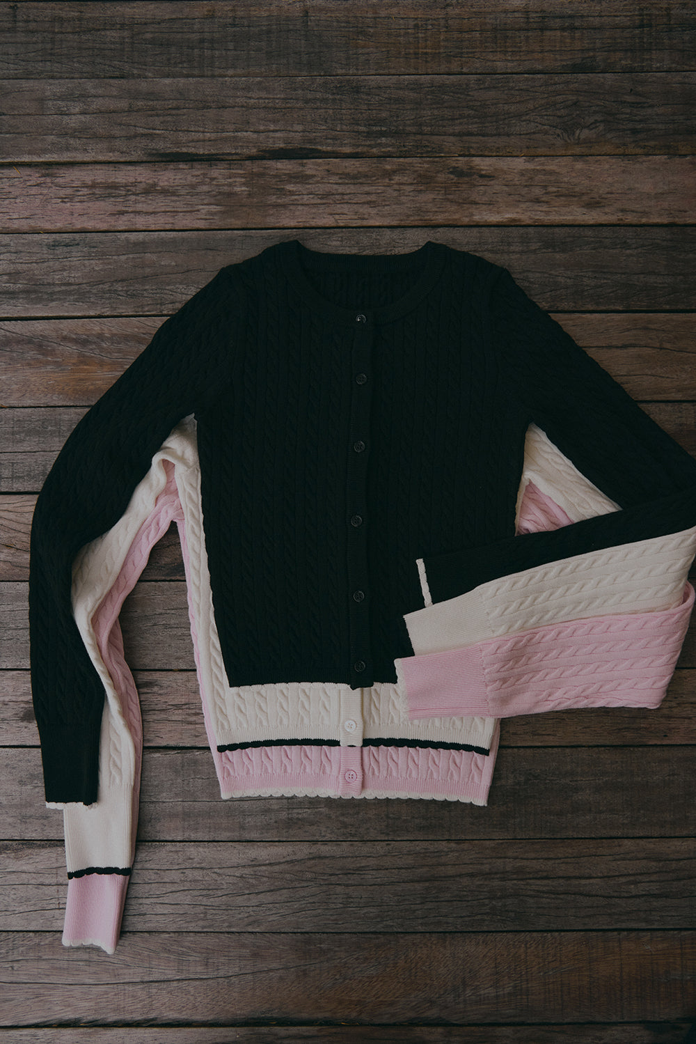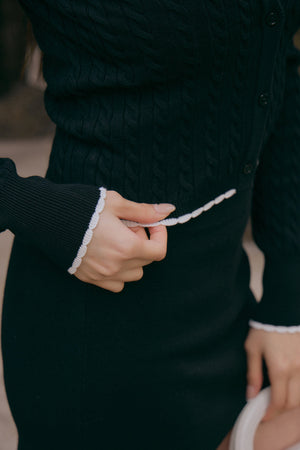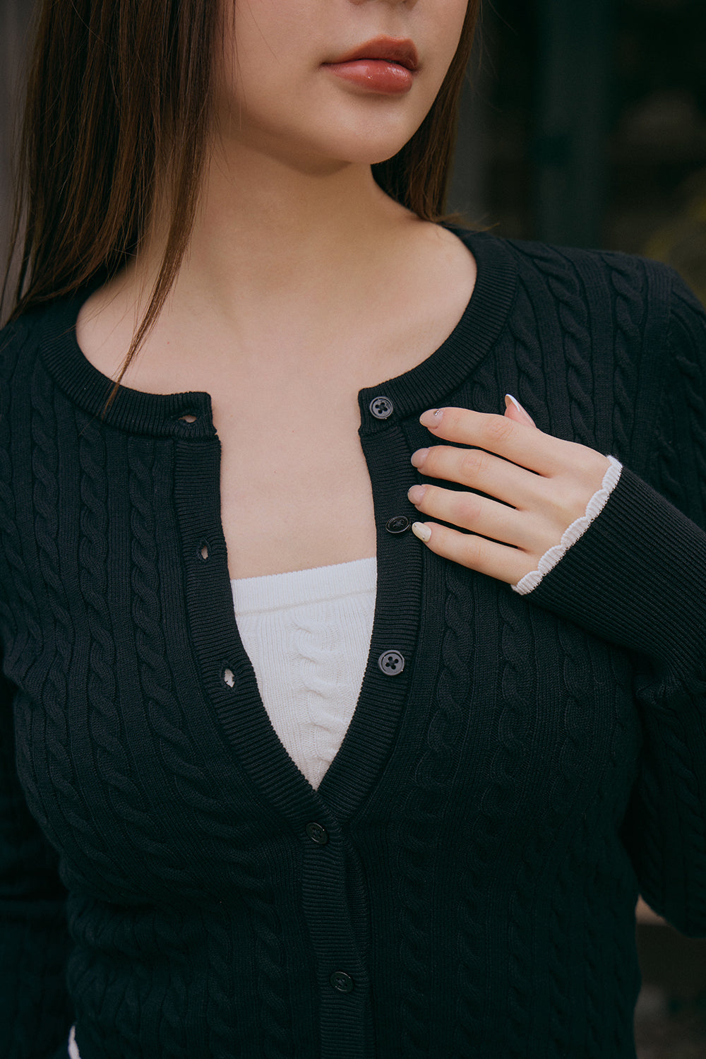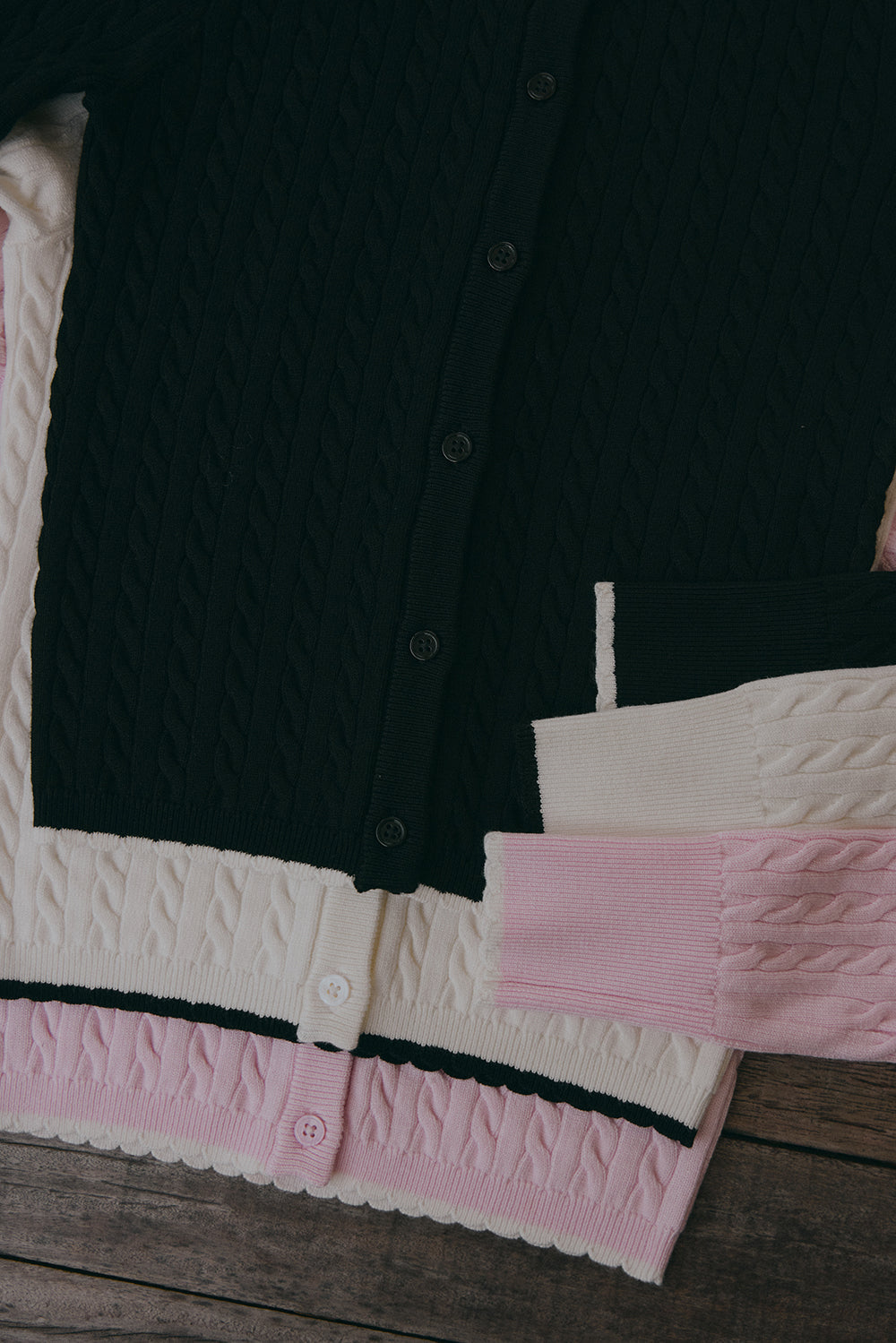 午後漫步麻花花邊開襟外套 Afternoon Walk Knit Ripple Trim Button-Up Cardigan