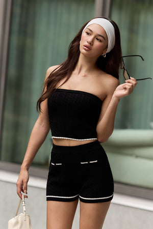Afternoon Walk Knit Ripple Trim Strapless Bra Top