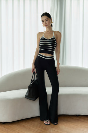 Afternoon Walk Knit Striped Thin Strap Halter BraTop