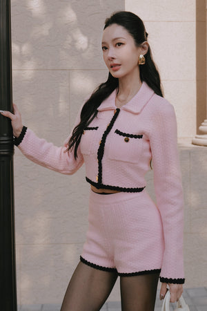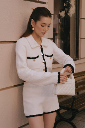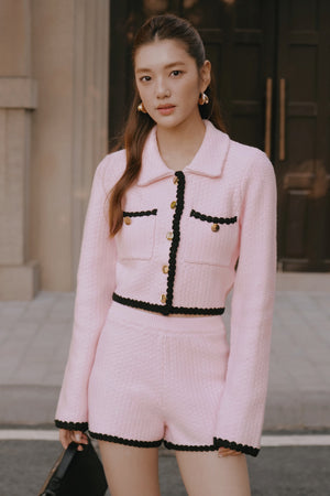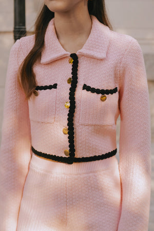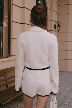 Afternoon Walk Chunky Knit Contrast Trim Long-Sleeve Button-Up Cardigan