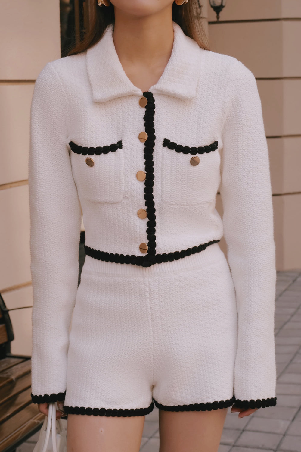Home All Afternoon Walk Chunky Knit Contrast Trim Long-Sleeve Button-Up Cardigan