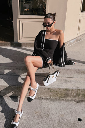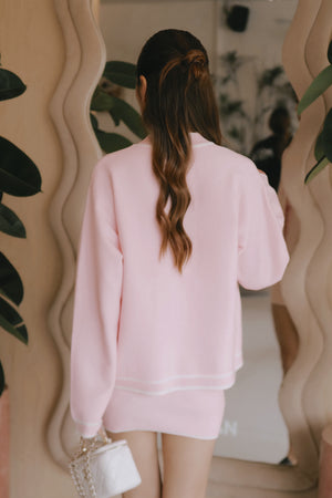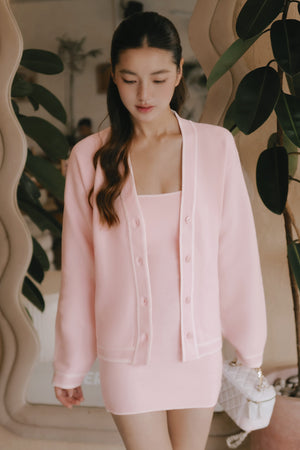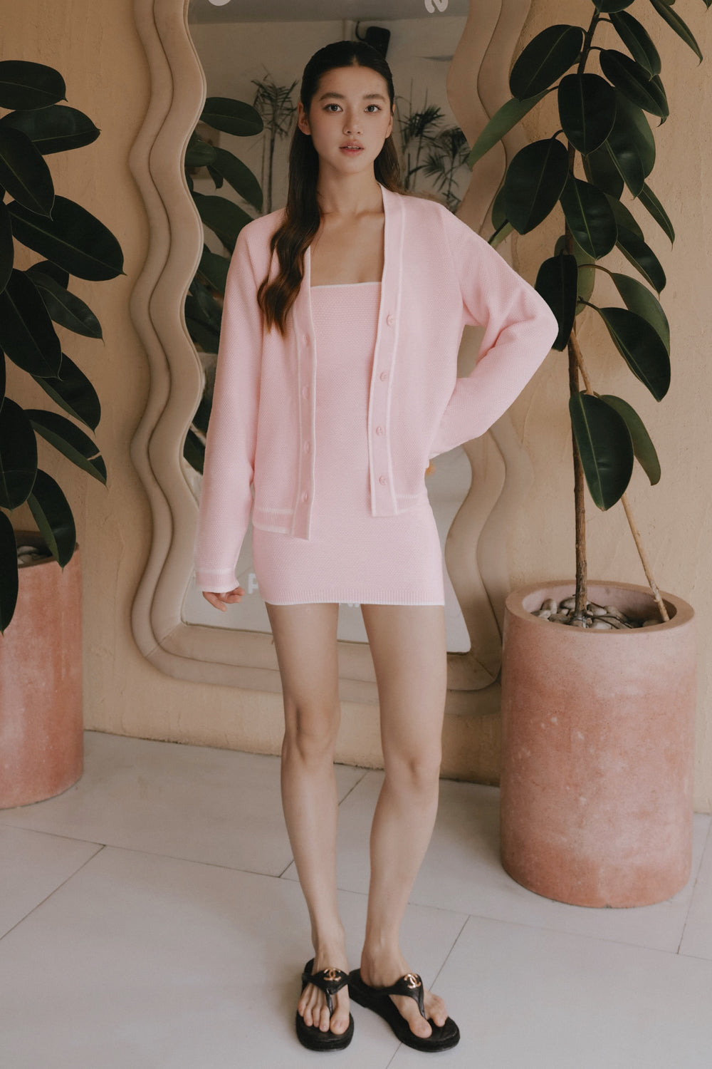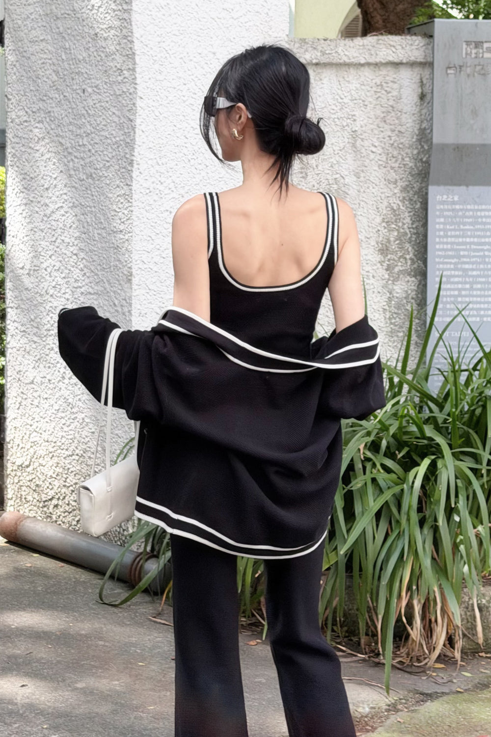 Afternoon Walk Tuck-Stitch Knit Contrast Trim Cardigan