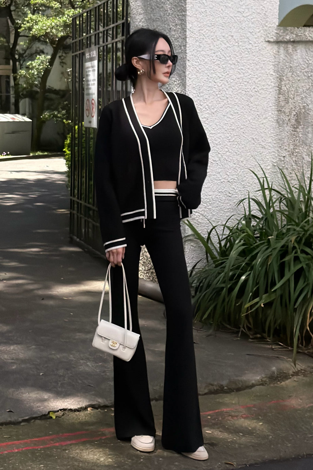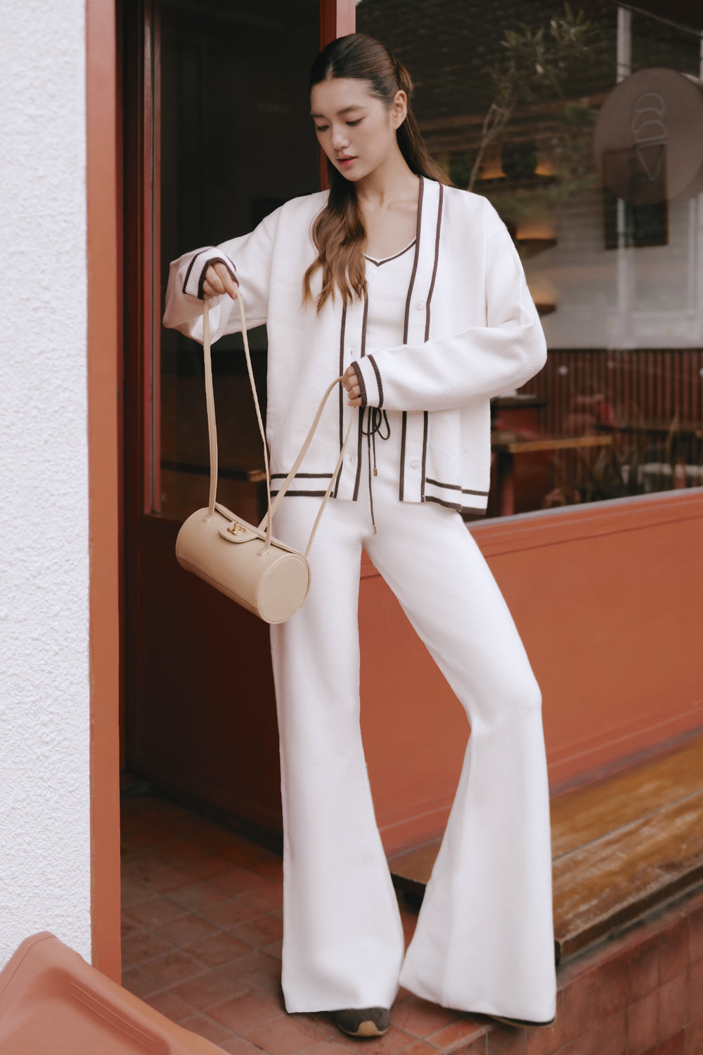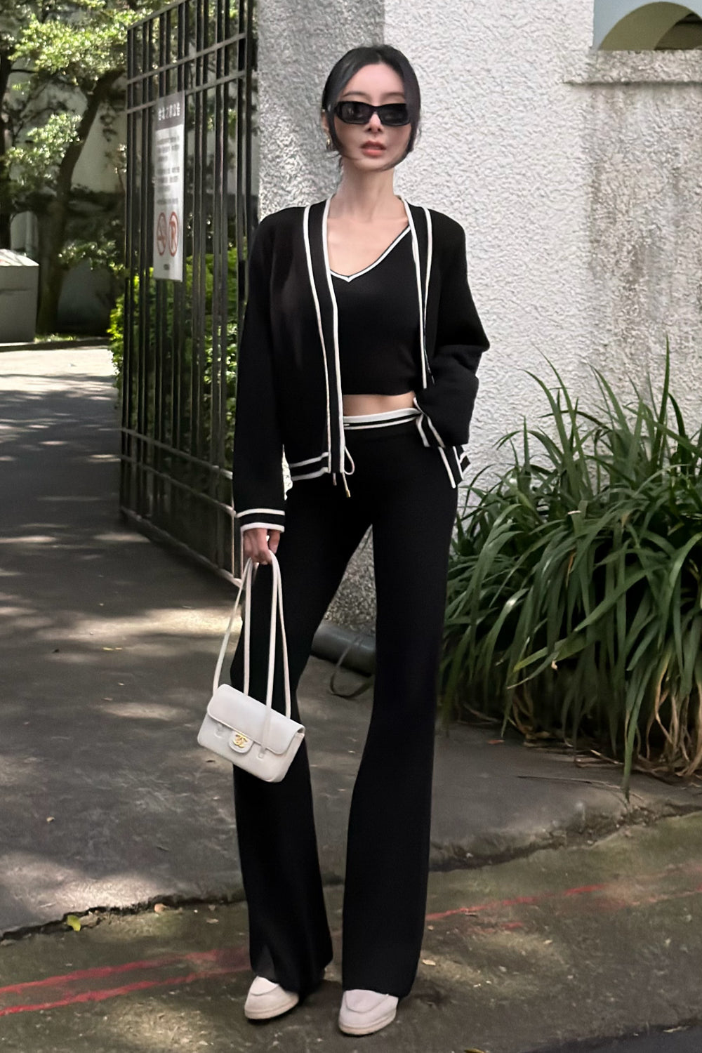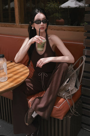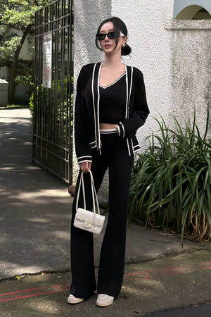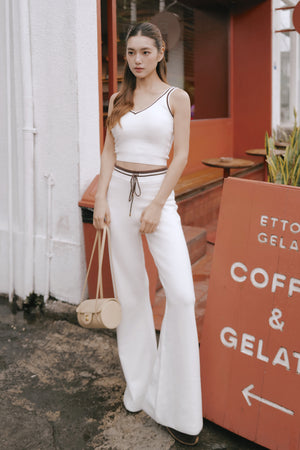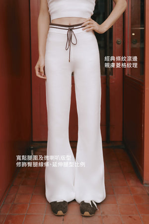 Afternoon Walk Tuck-Stitch Knit Contrast Trim Drawstring Wide-Leg Pants