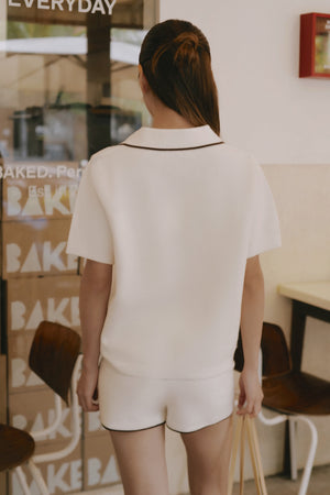 Afternoon Walk Tuck-Stitch Knit Contrast Trim Polo Top