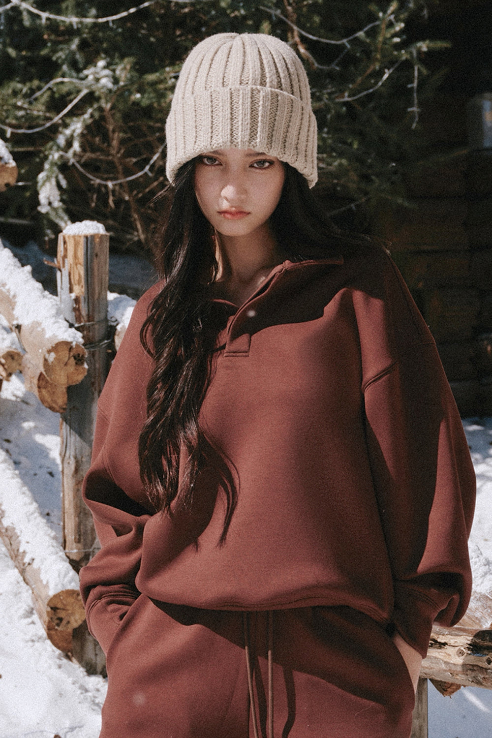 Home All Airy Heater Oversized Polo Sweatshirt
