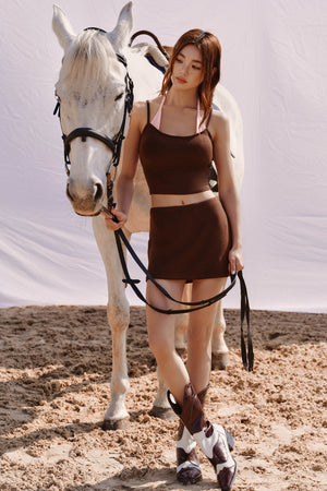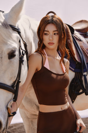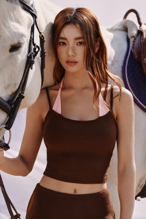 Home All Elegant Rib Faux-Layered Strap BraTop