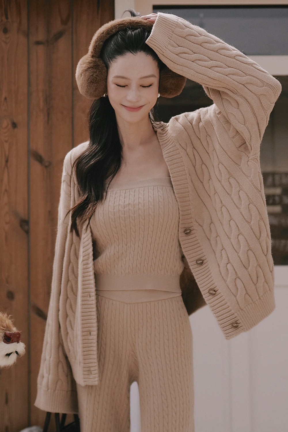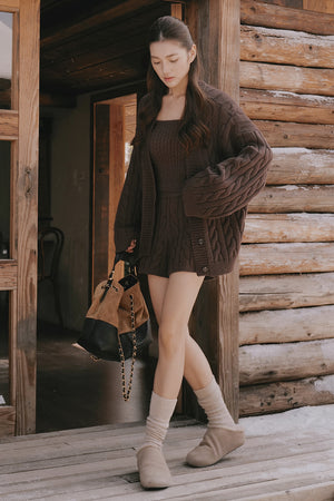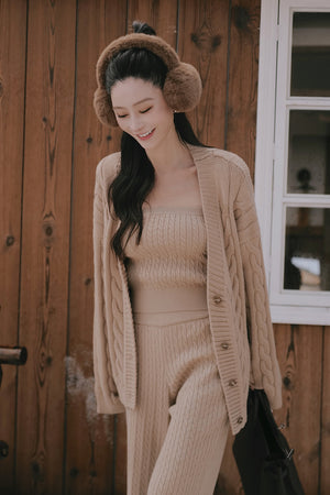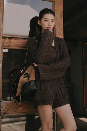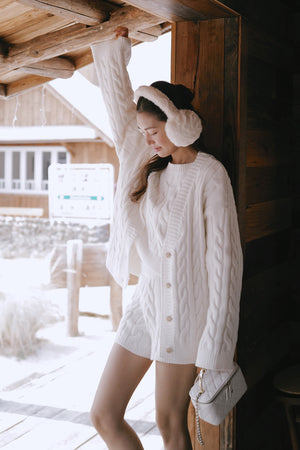 Gentle Touch Cable Knit Button-Up Sweater