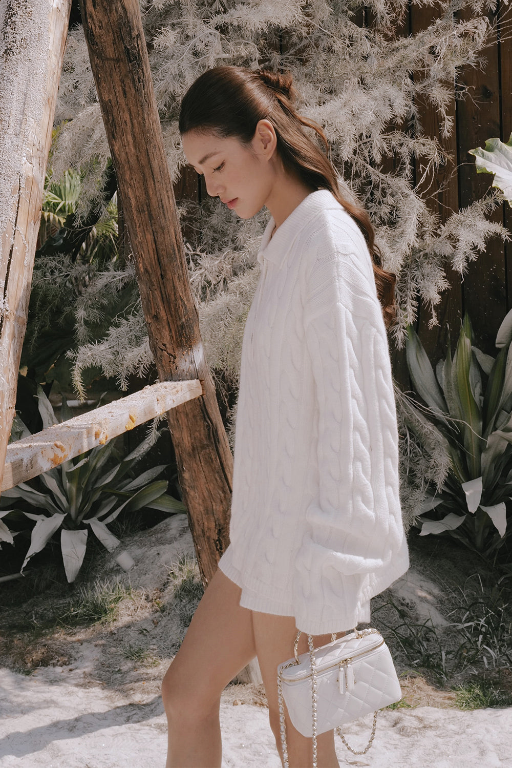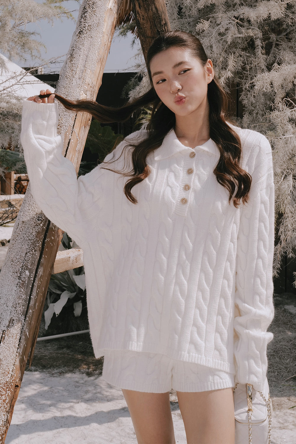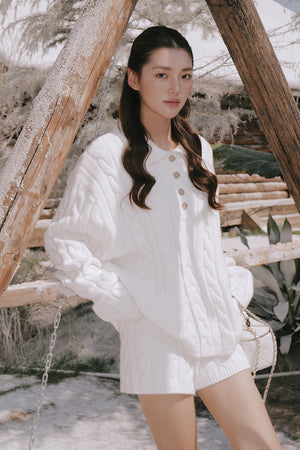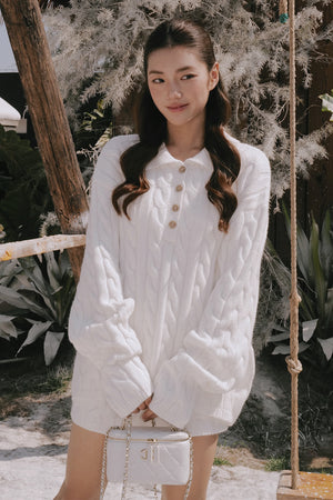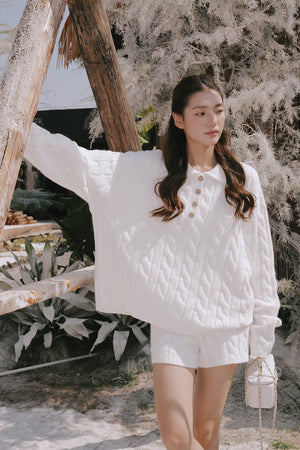 Gentle Touch Cable Knit Half-Button Collared Sweater