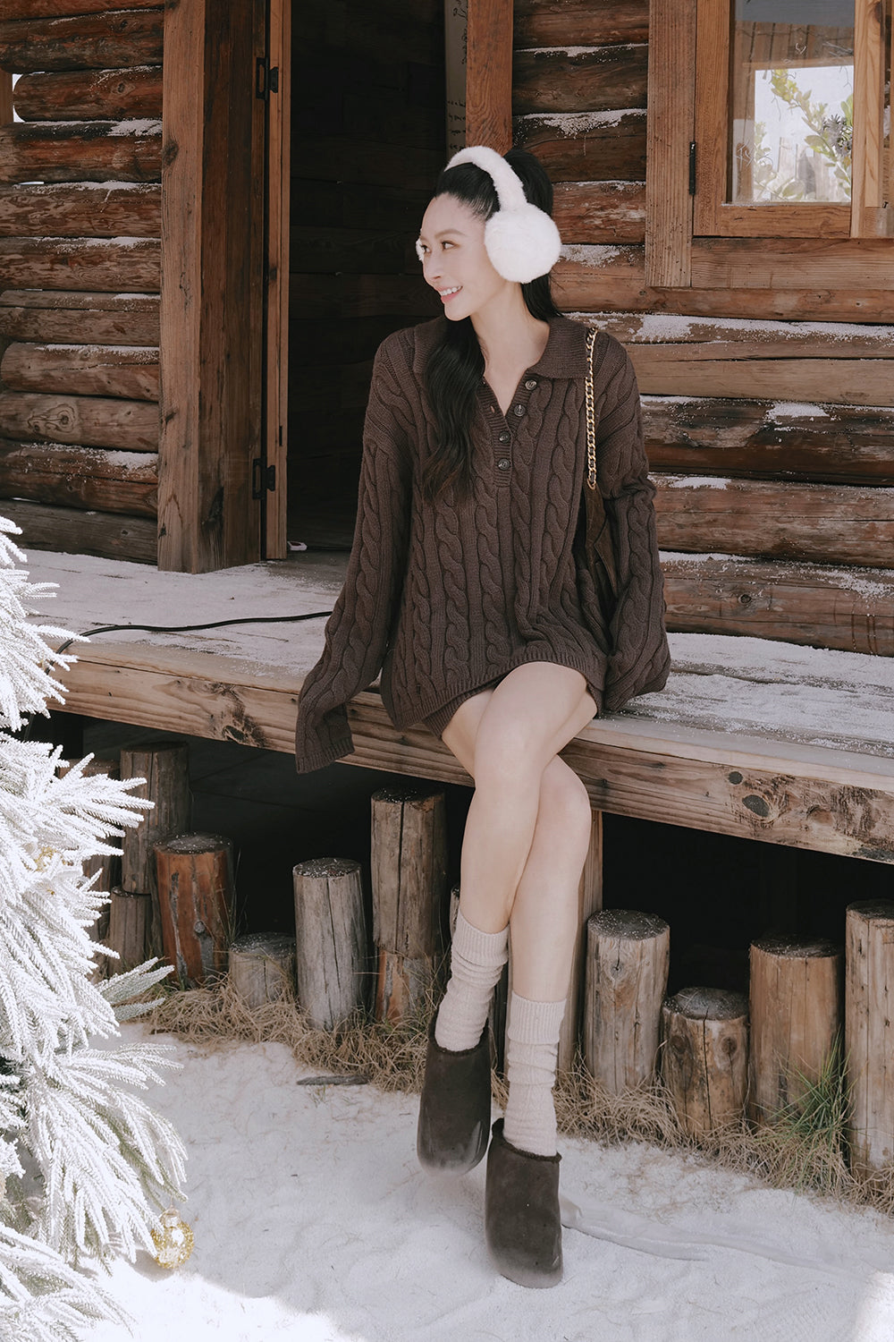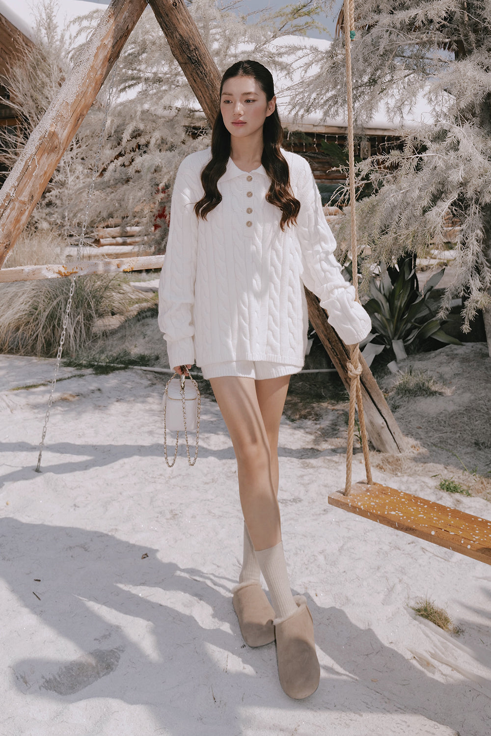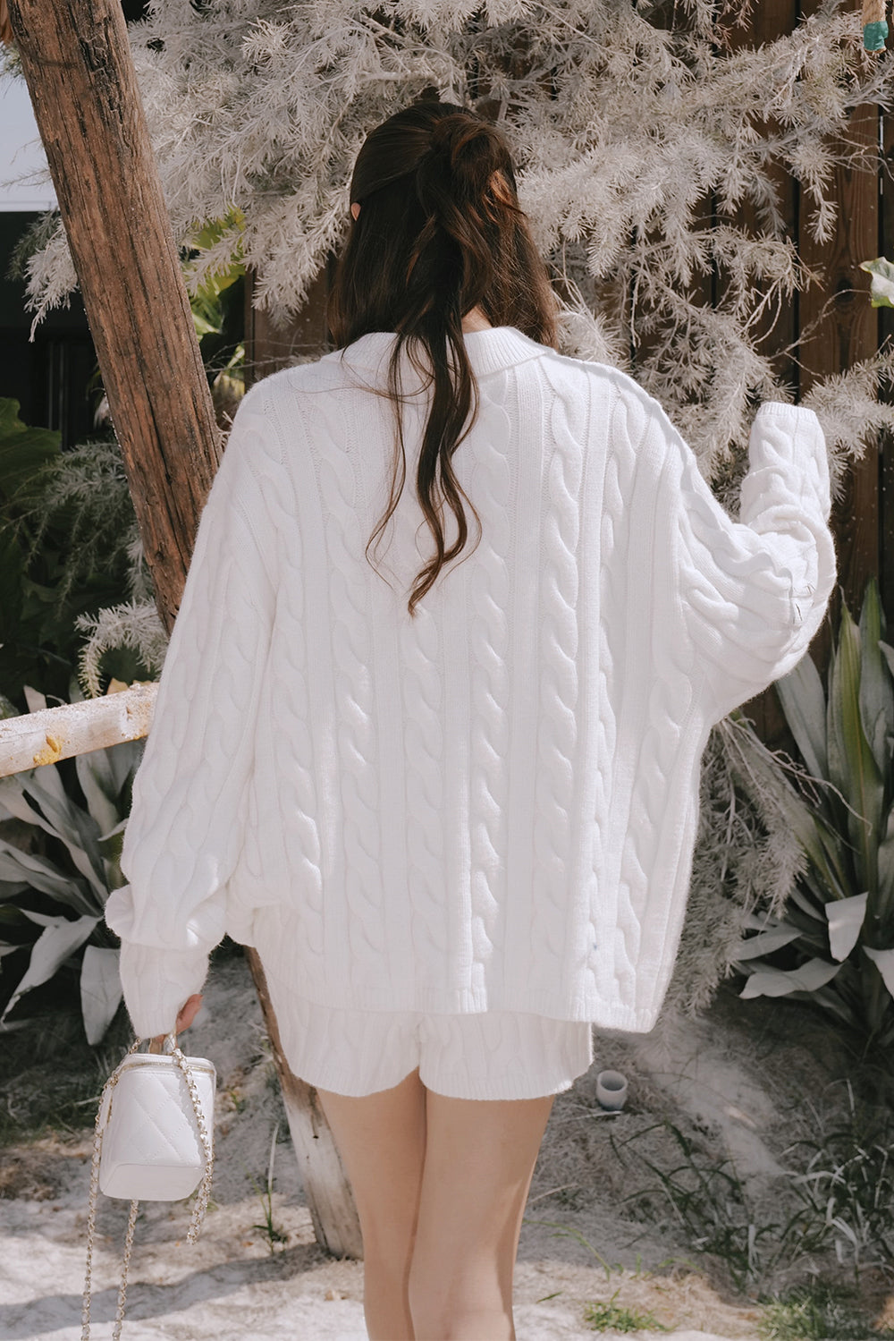 Gentle Touch Cable Knit Half-Button Collared Sweater