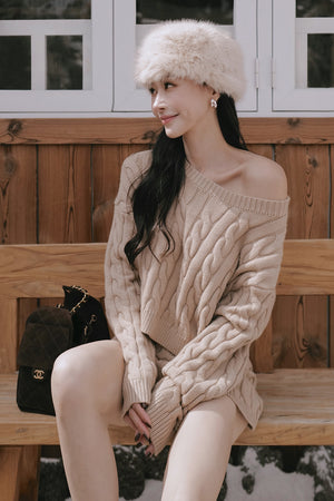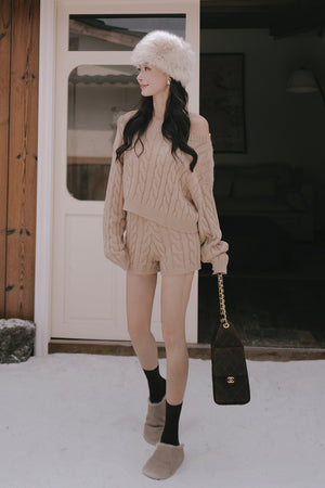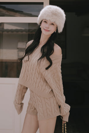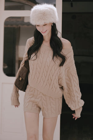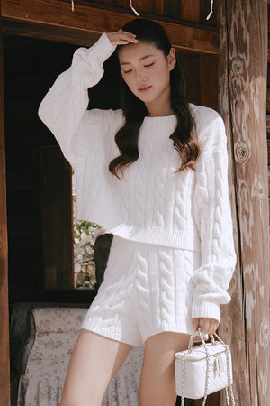 Gentle Touch Cable Knit Long-Sleeve Crop Top