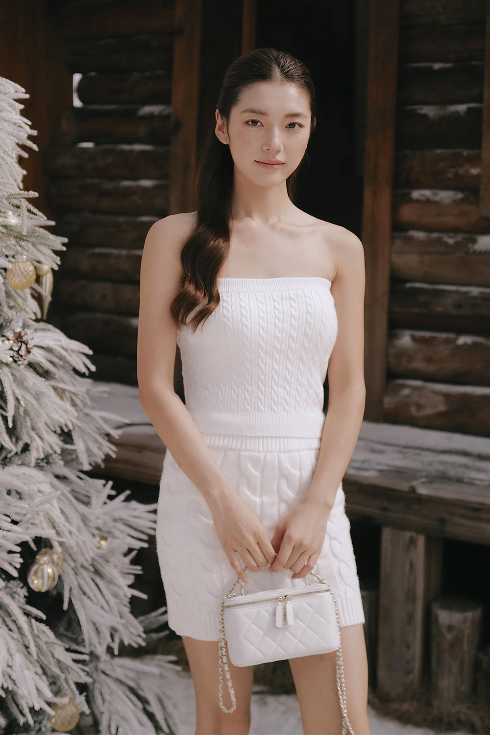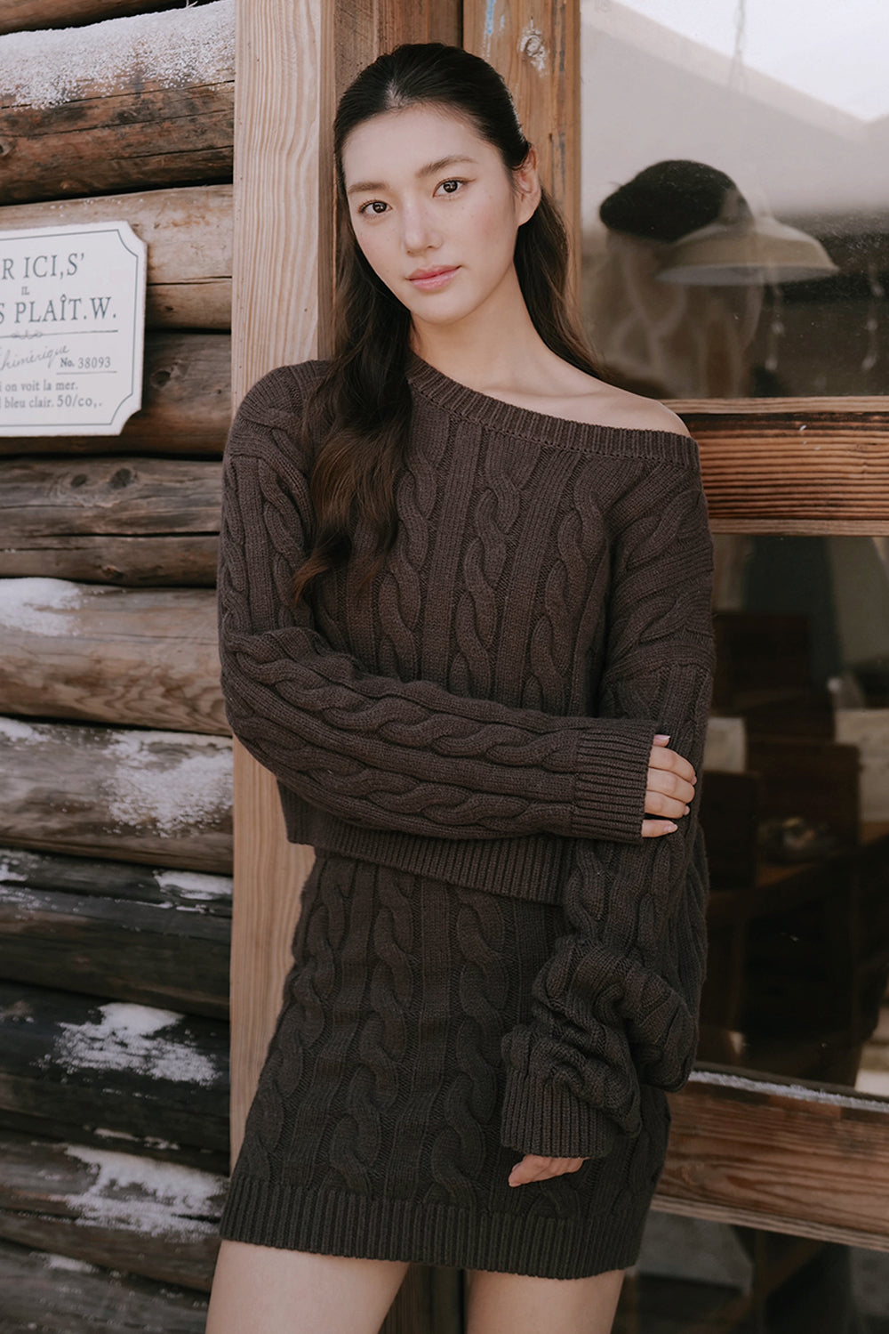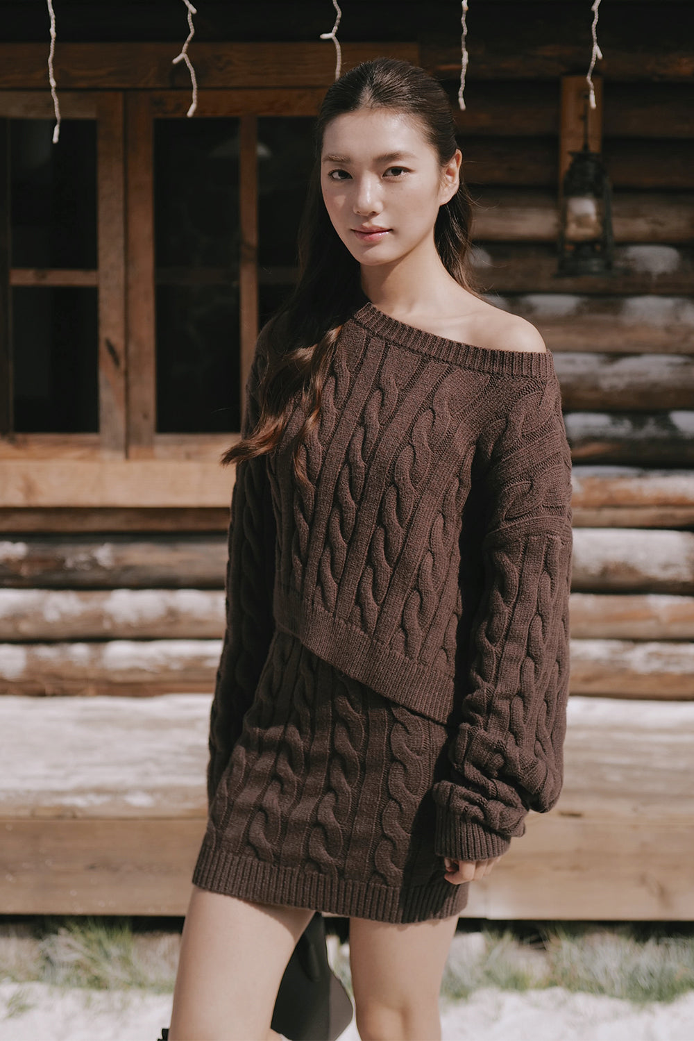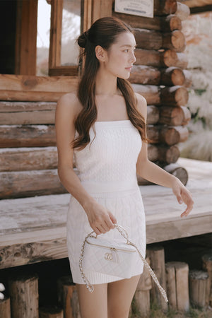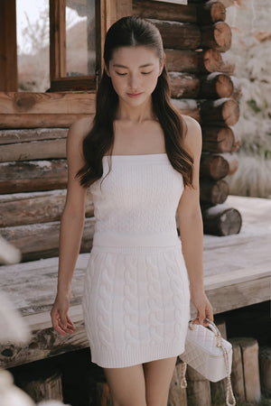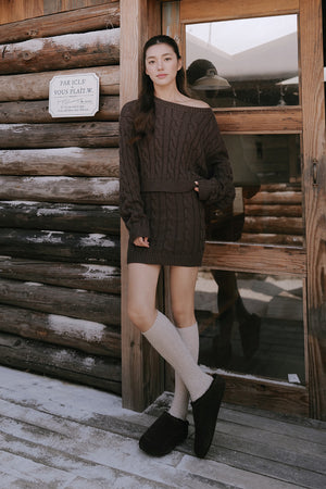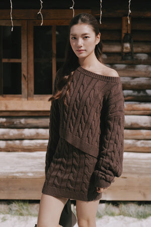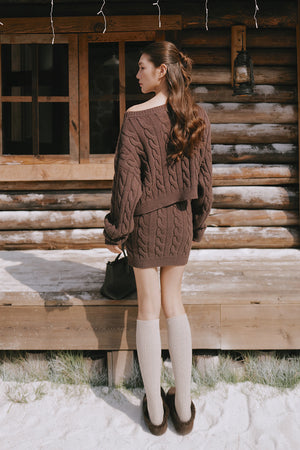 Gentle Touch Cable Knit Wide-Waist Mini Skirt