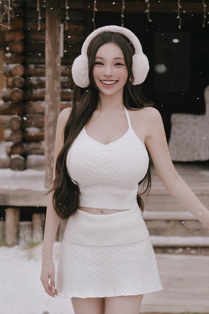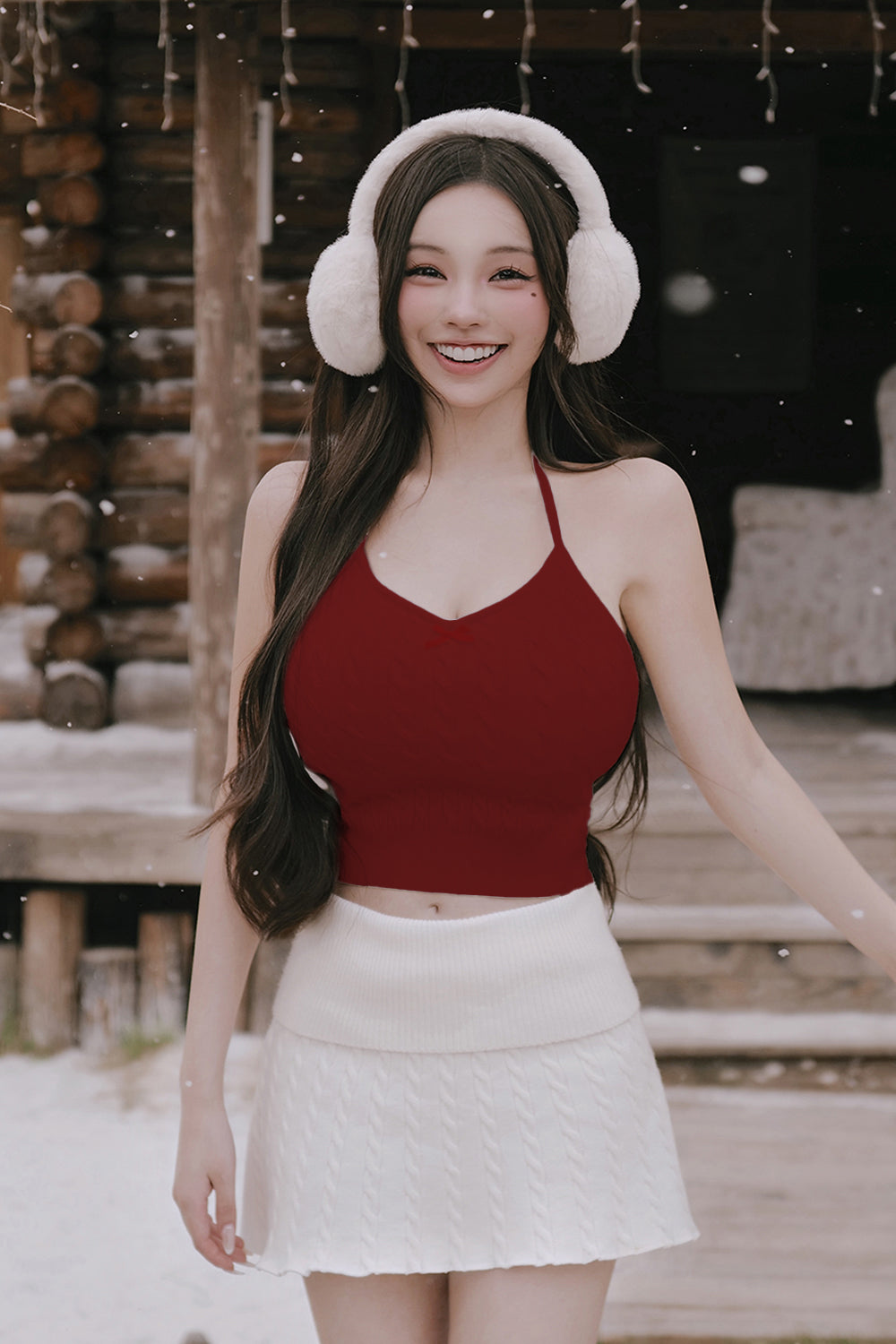 Gentle Touch Knit Slim-Strap Halter BraTop