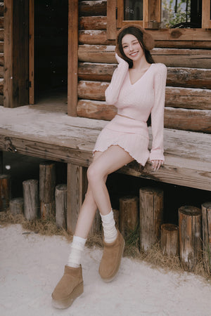 Gentle Touch Knit V-Neck Cropped Long Sleeve Top