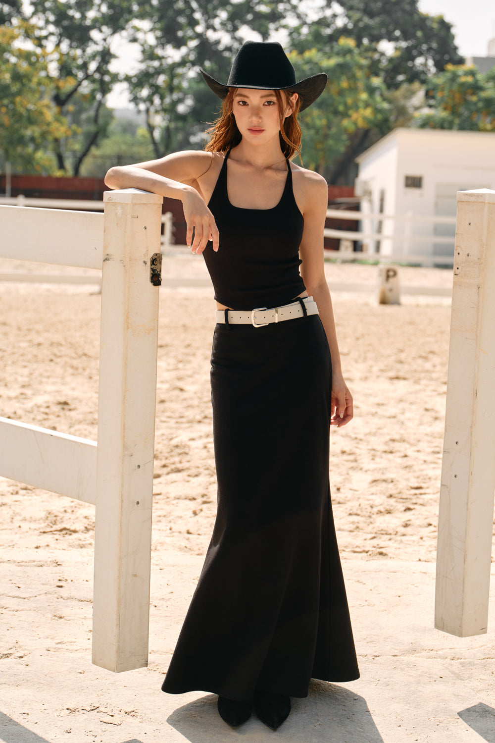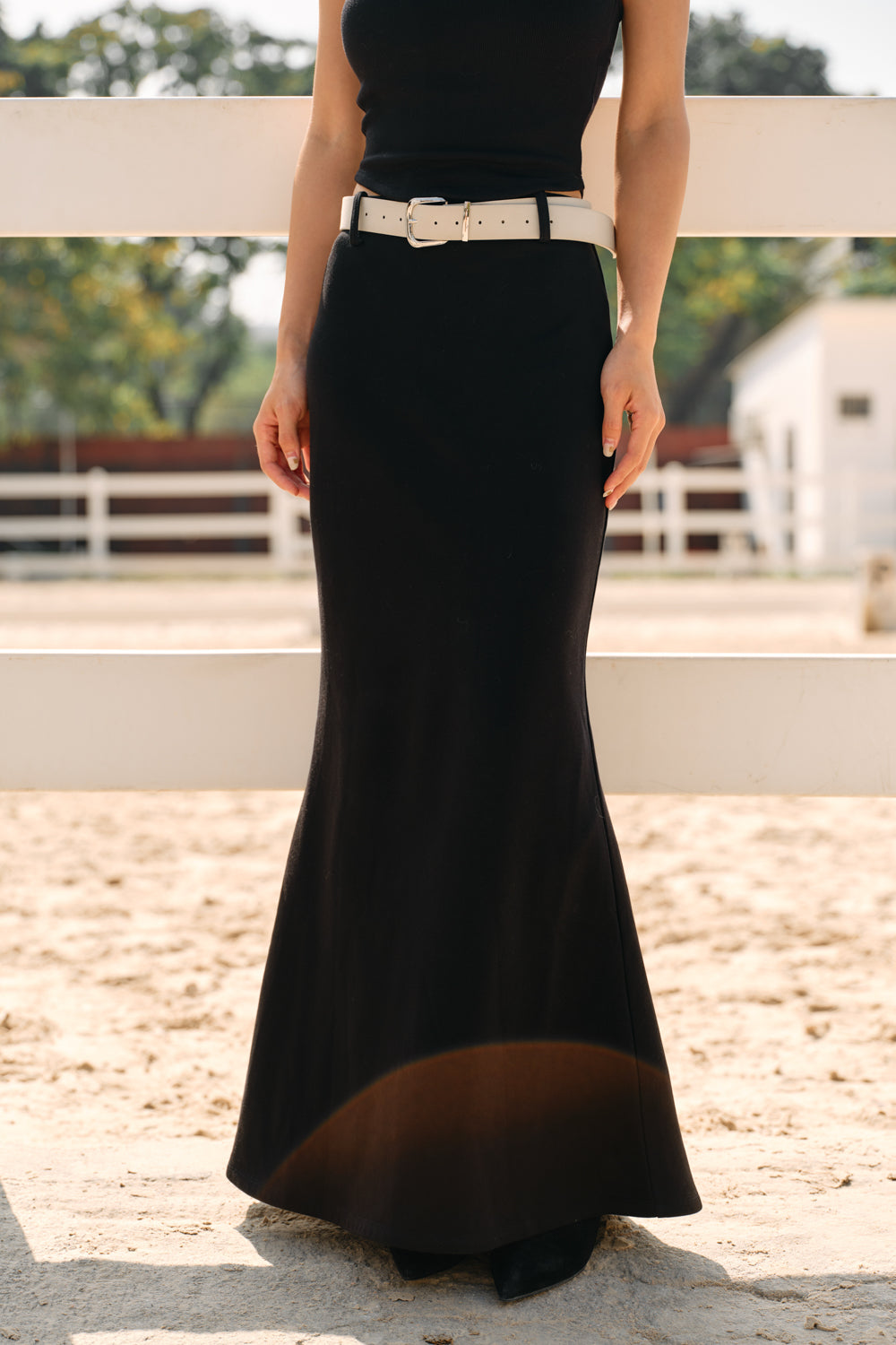 Fishtail Midi Skirt With Faux Suede Belt