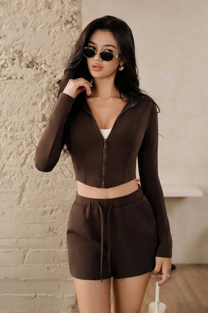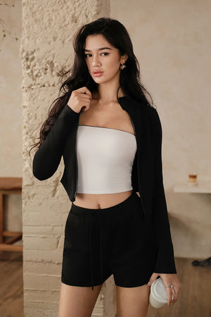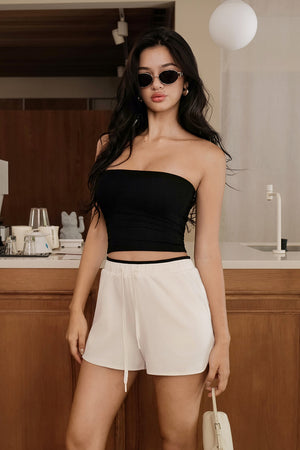 Peach Skin Contrast Trim Drawstring Waist Shorts
