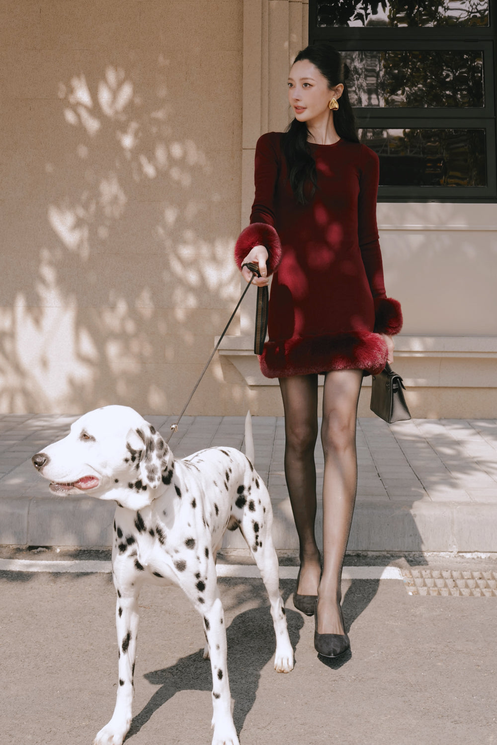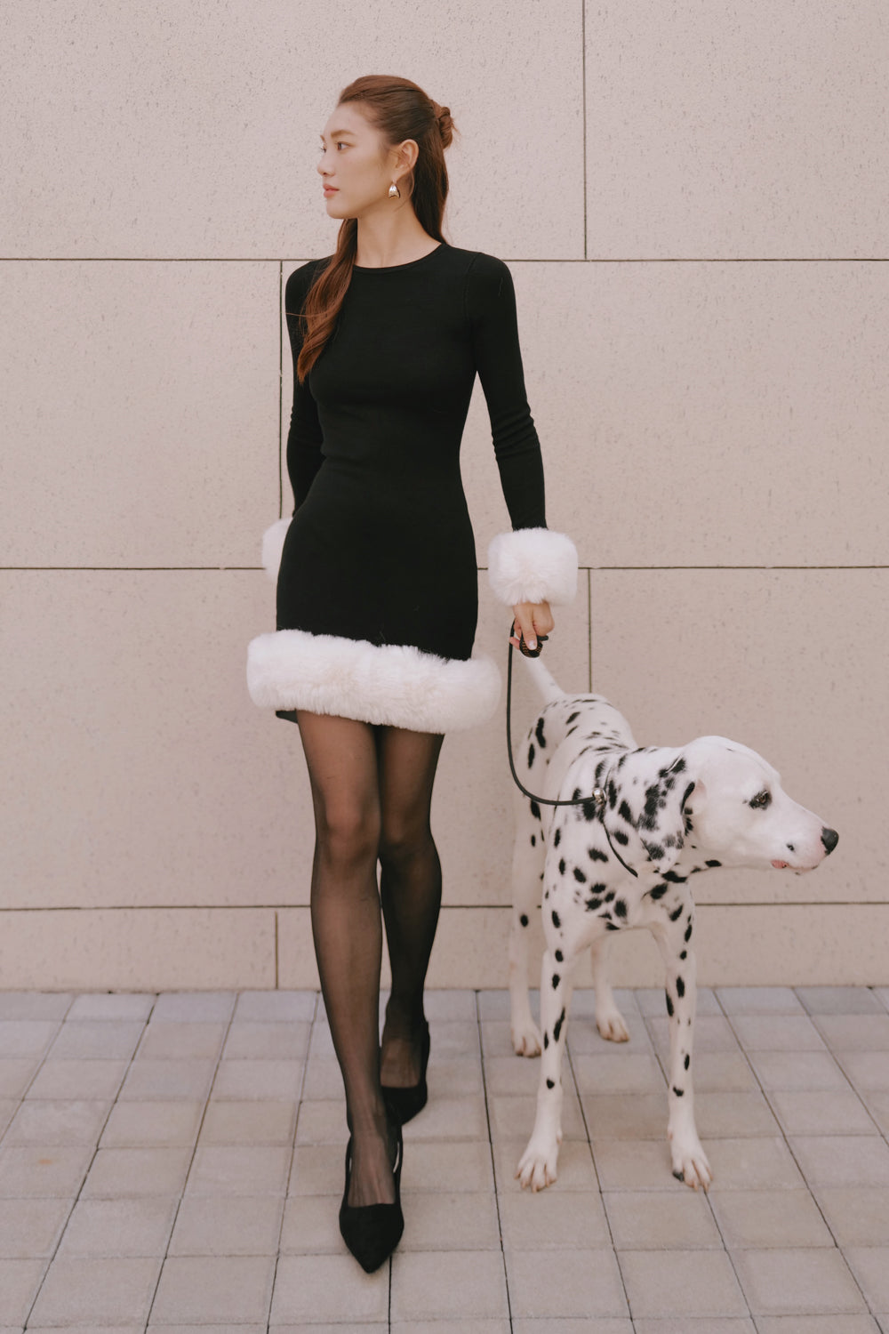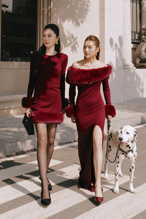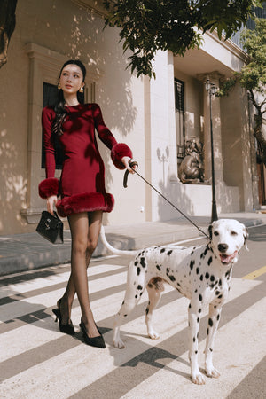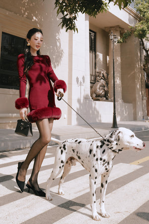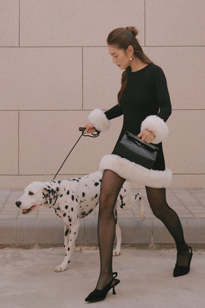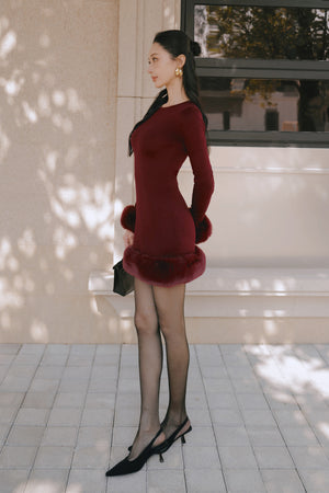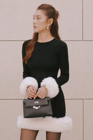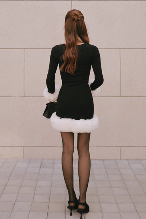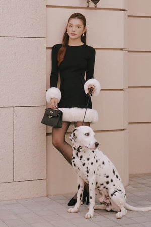 Ribbed Knit Long Sleeve Mini Dress with Faux Fur Collar