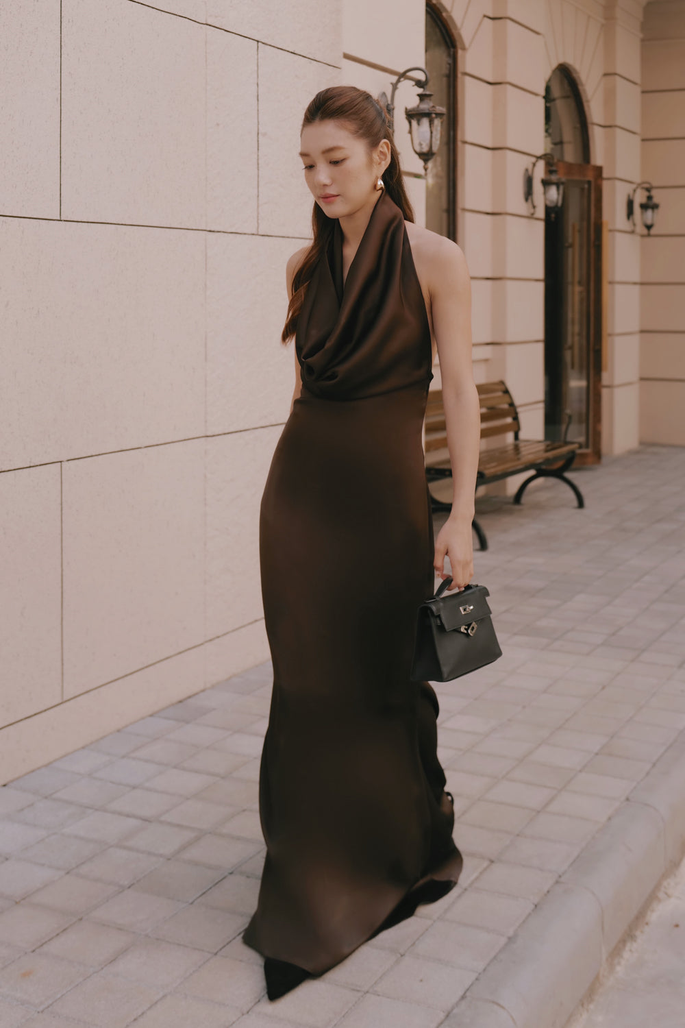 Satin Halterneck Maxi Dress