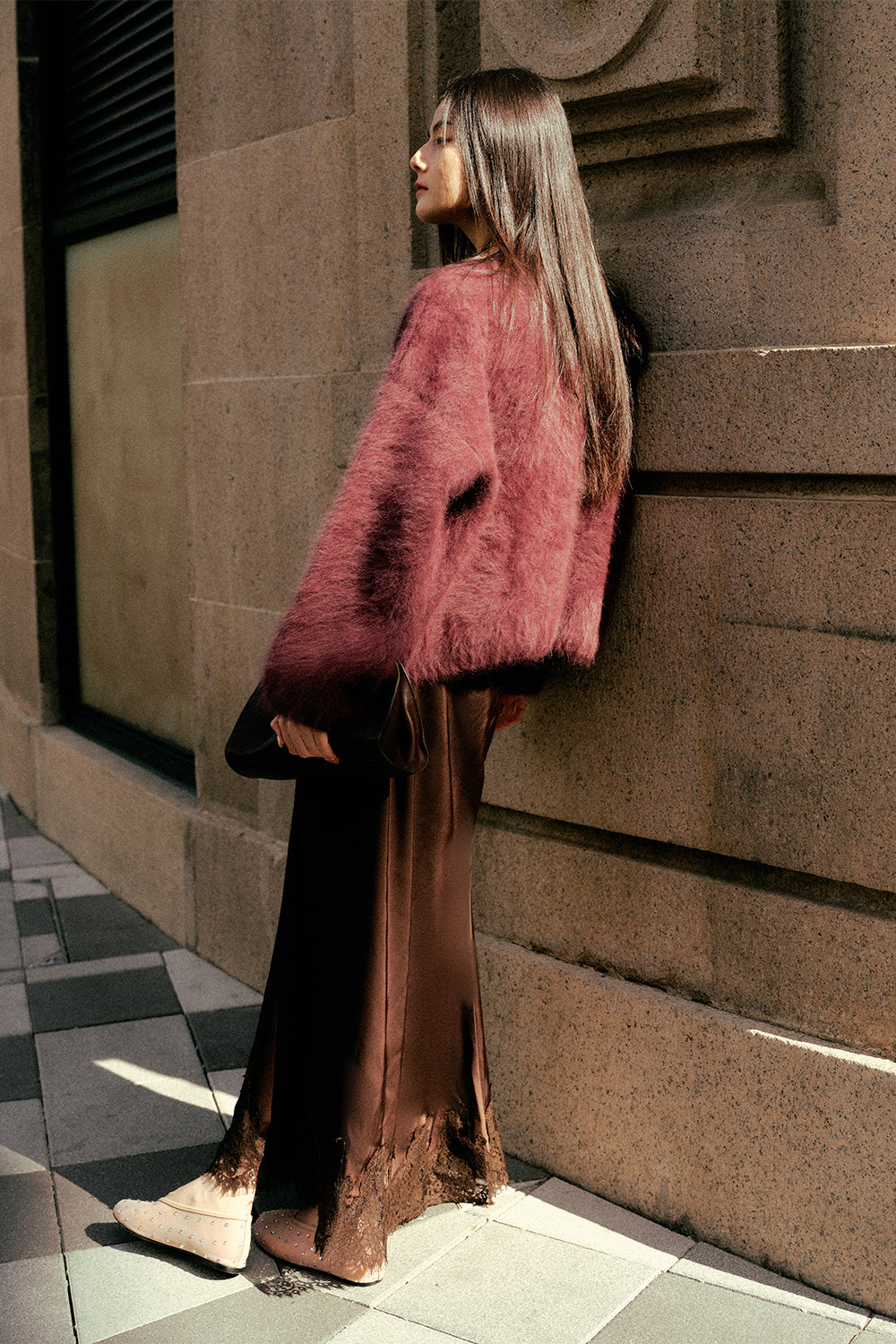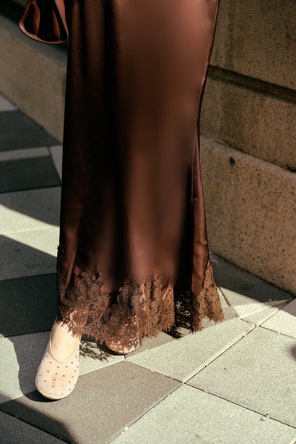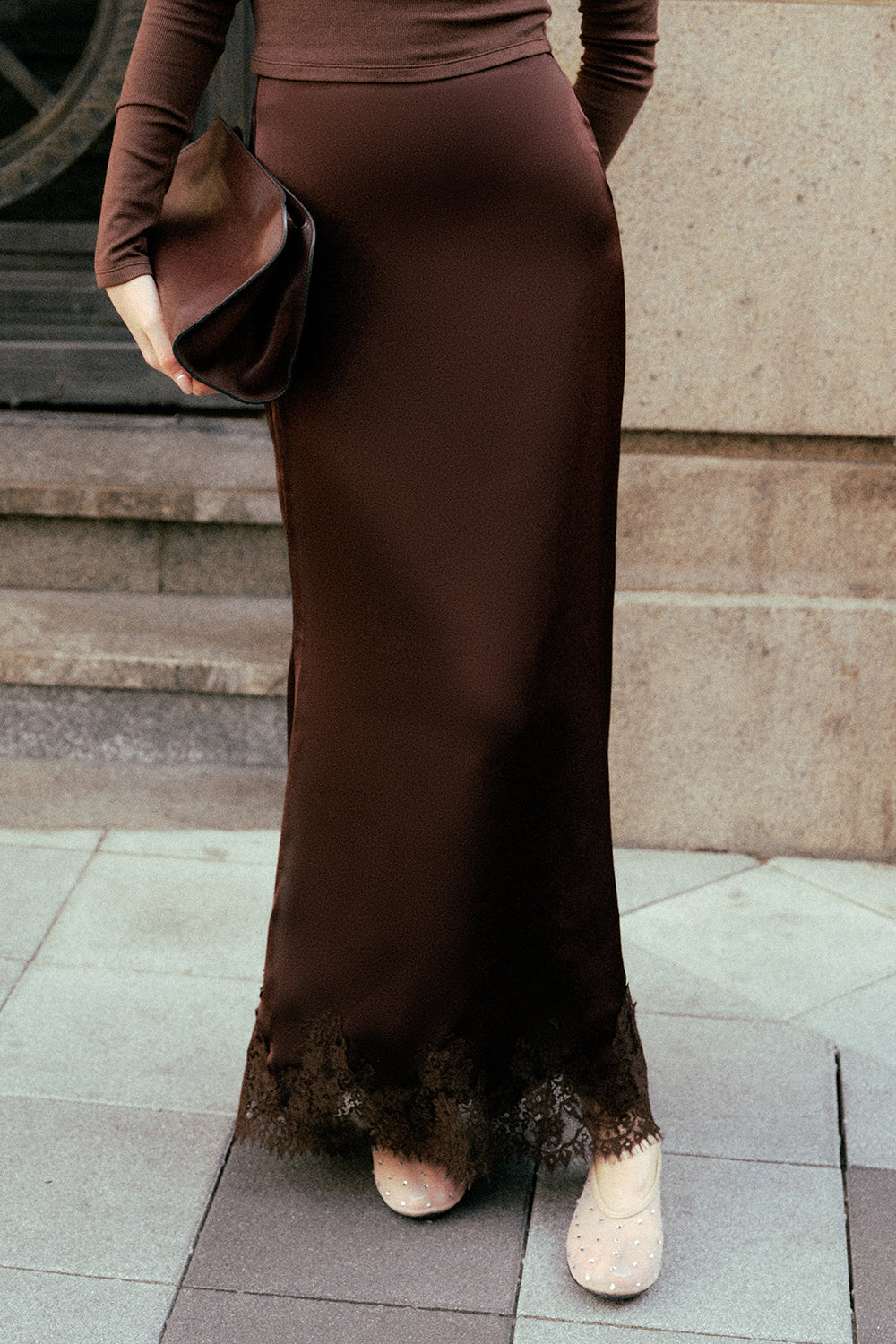Satin Lace Maxi Skirt