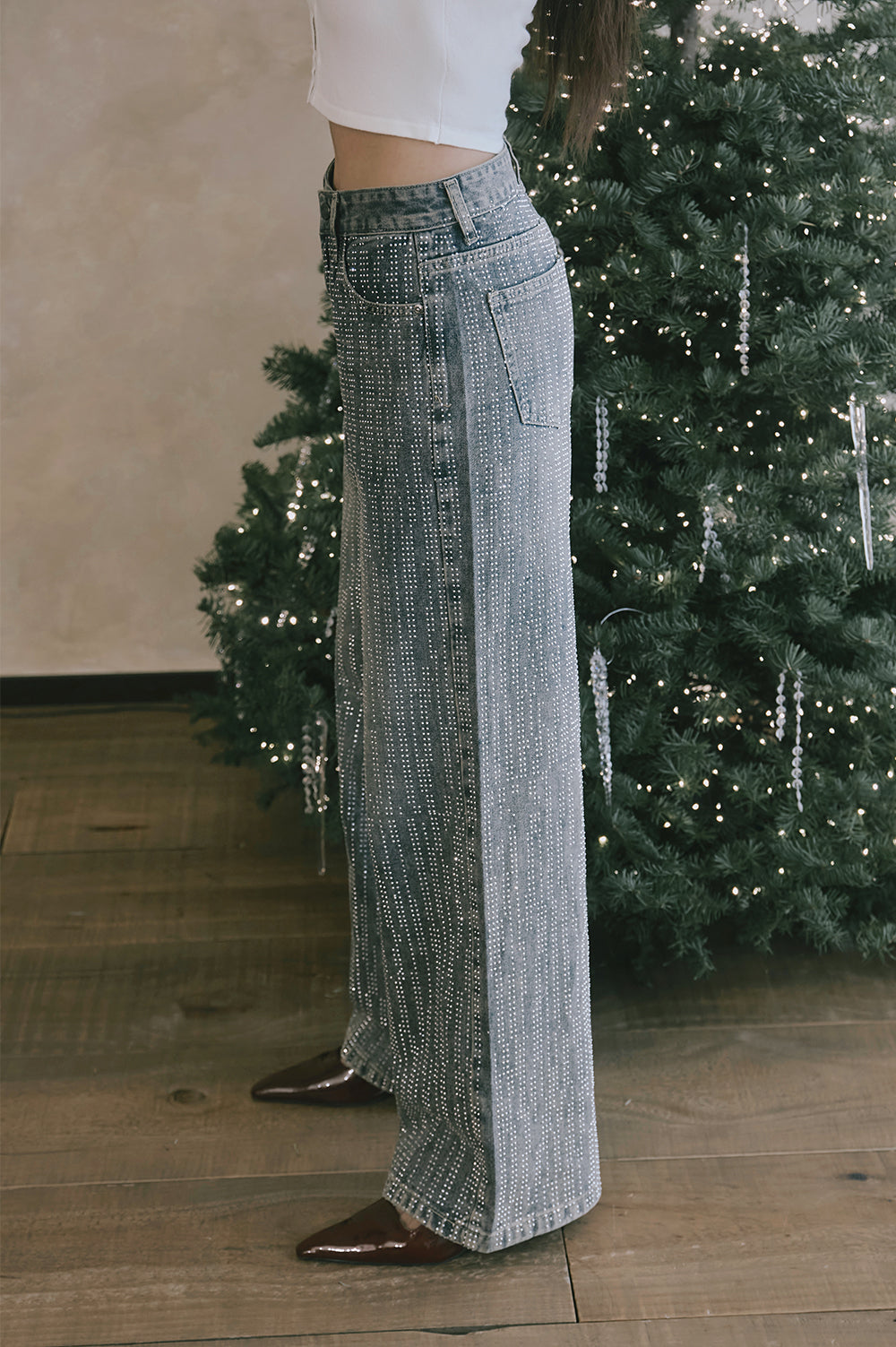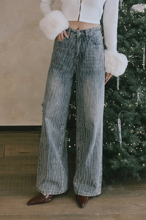 Sequin-Embellished Straight Jeans