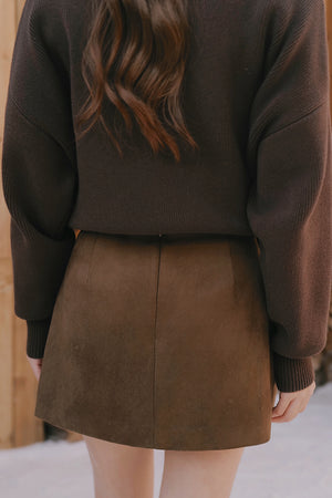 Straight-Cut Suede Mini Skirt