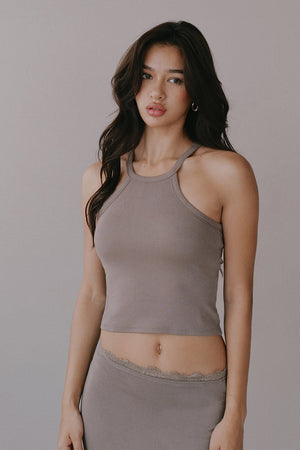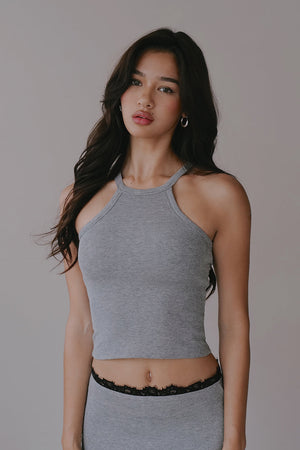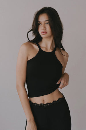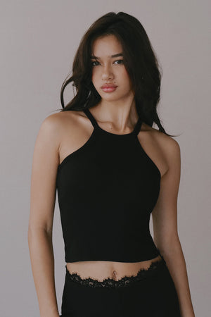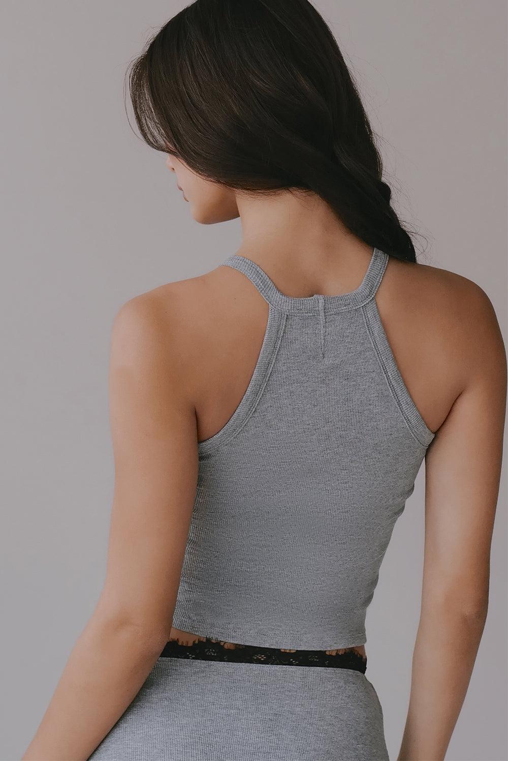 Elegant Rib Knit Halter Neck Sleeveless Bra Top