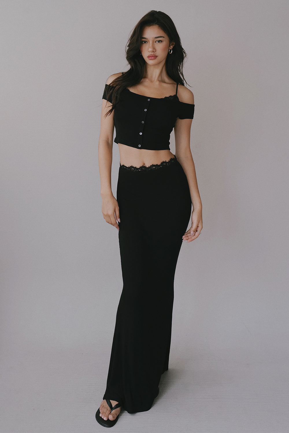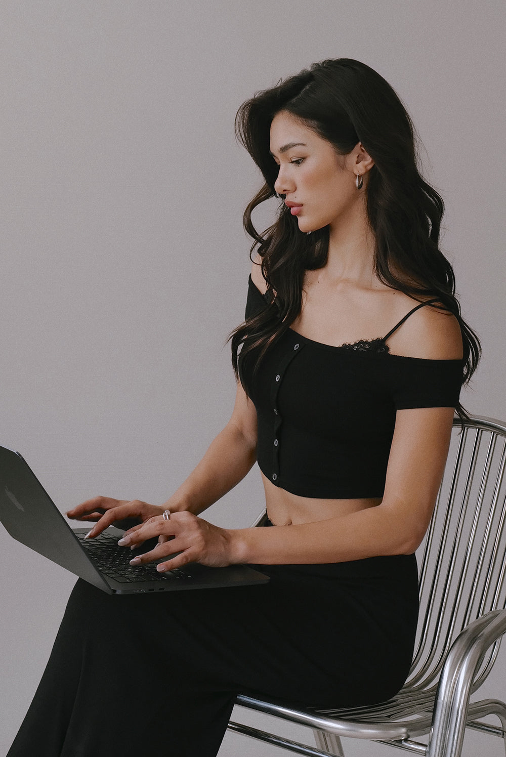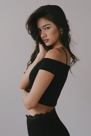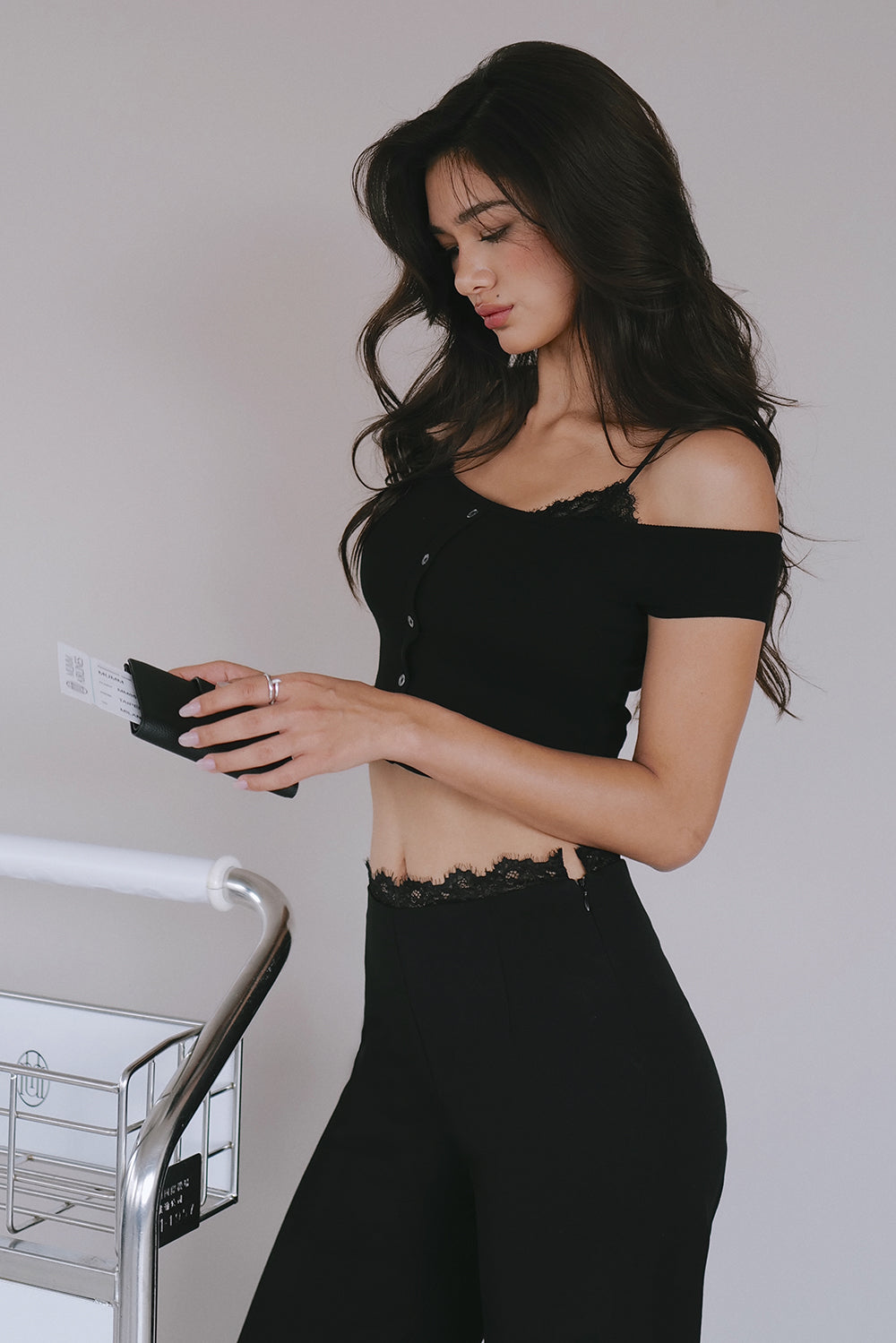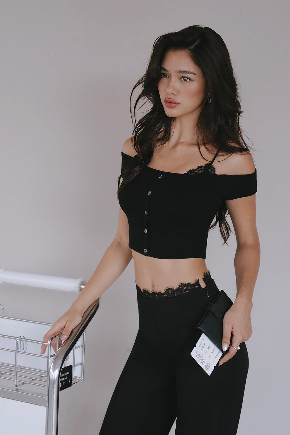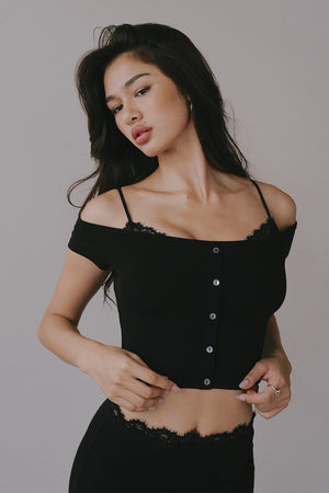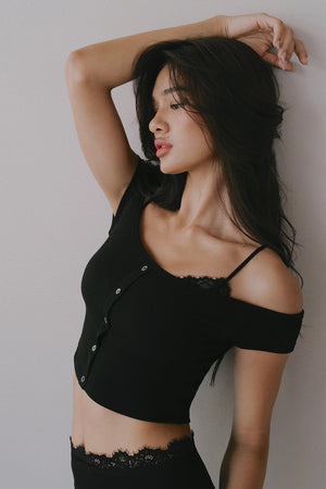 Elegant Rib Lace Trim Off-Shoulder BraTop