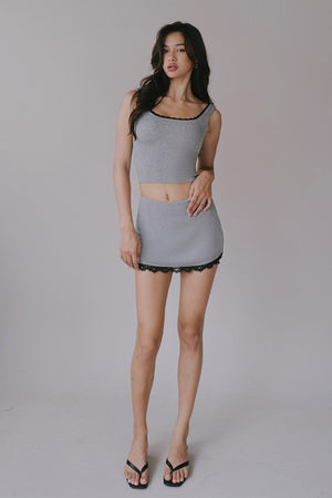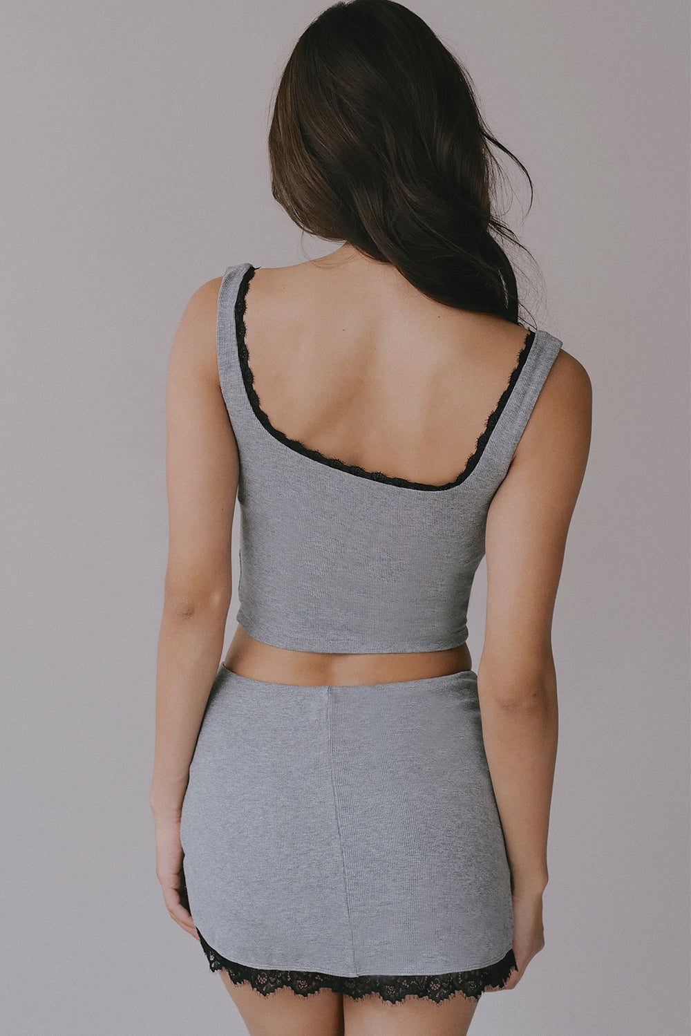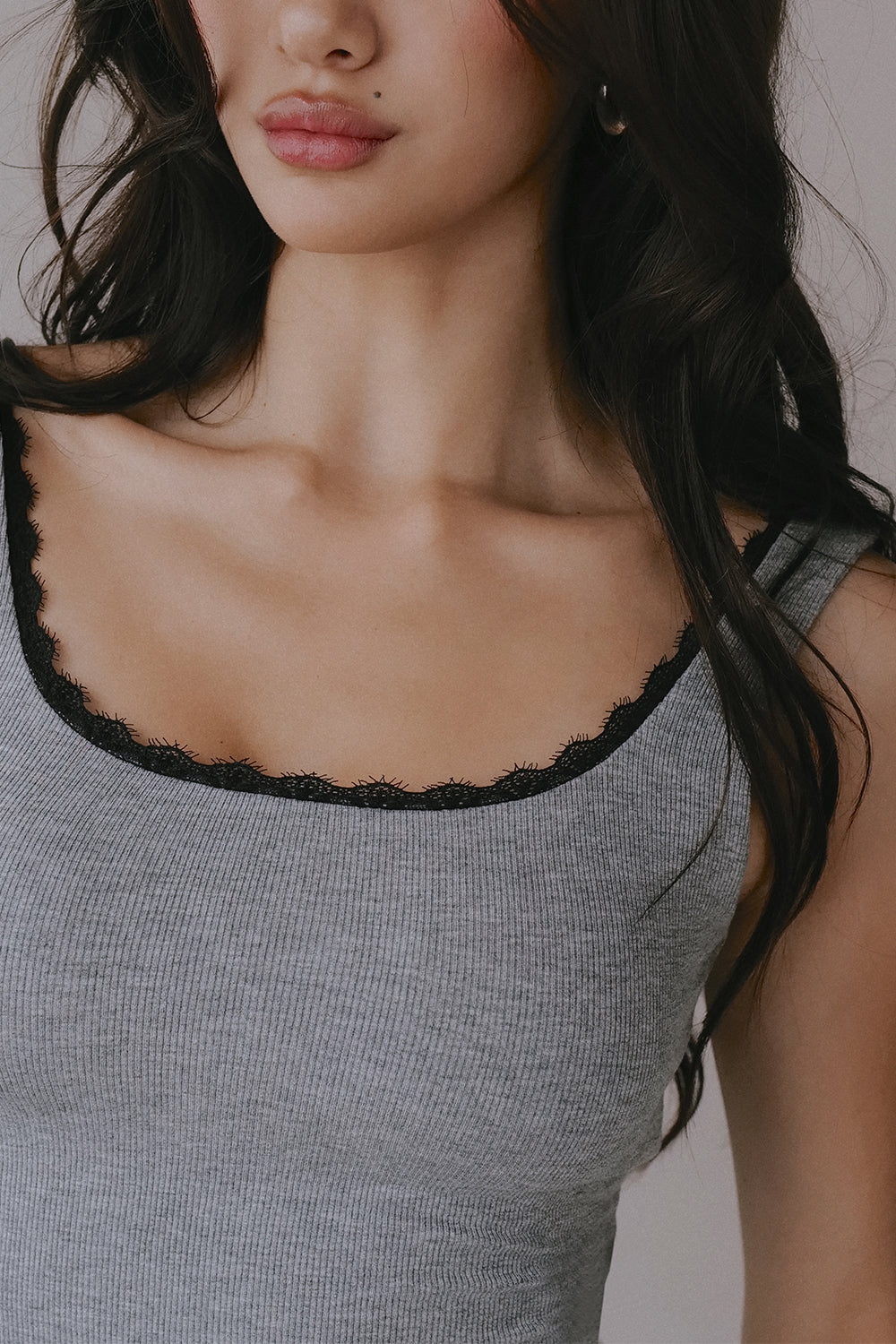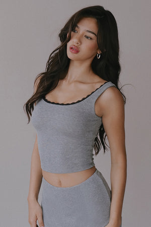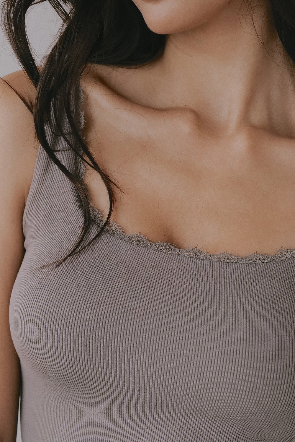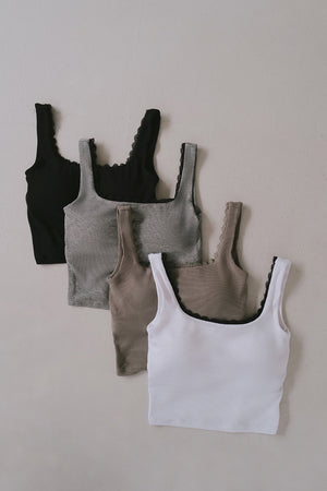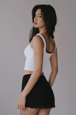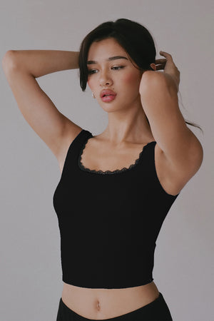 Elegant Rib Lace Trim Wide Strap Bra Top