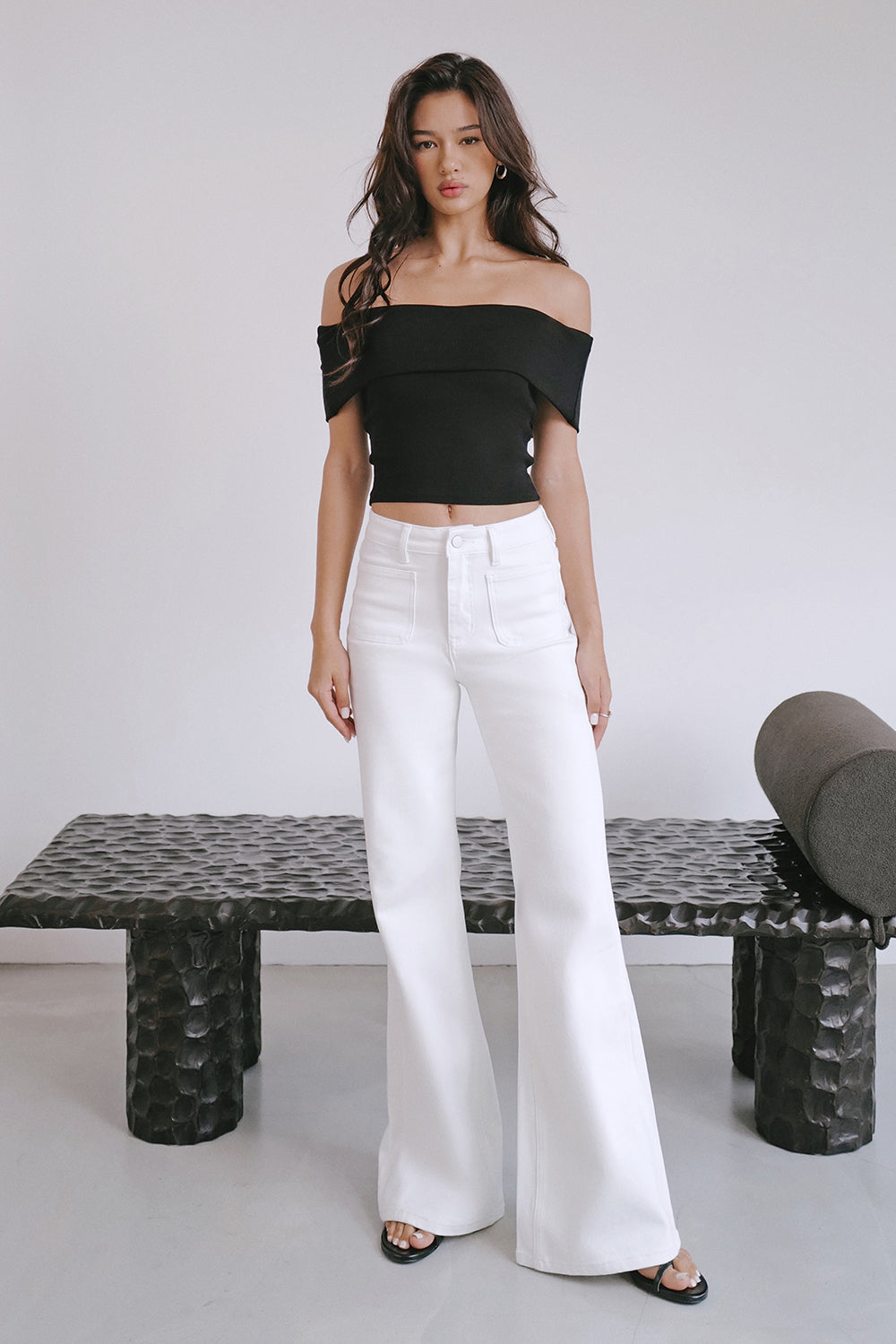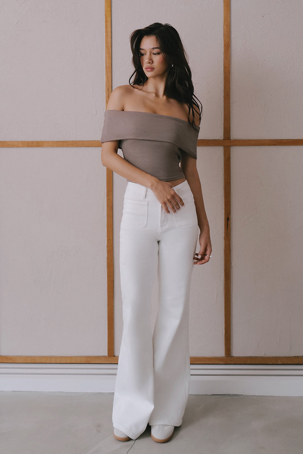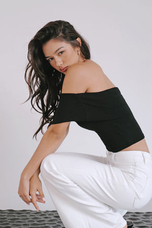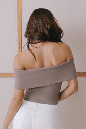 Elegant Rib Off-Shoulder Sleeveless BraTop