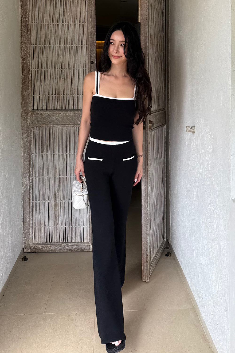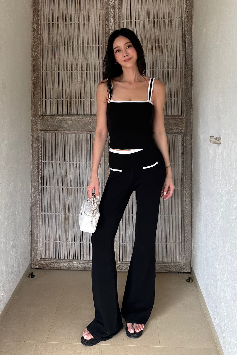 Ice Knit Contrast Trim Spaghetti Strap BraTop