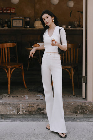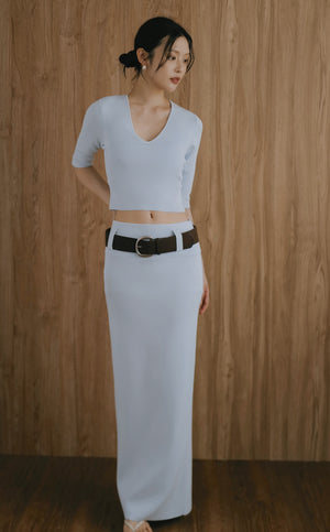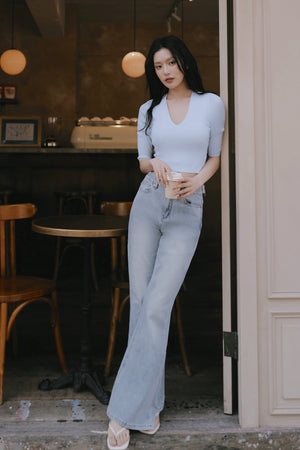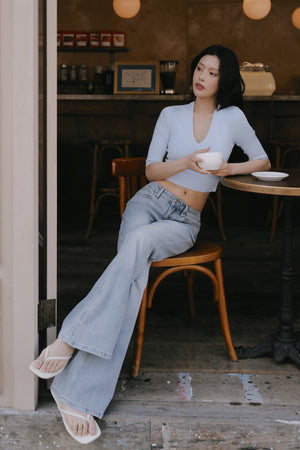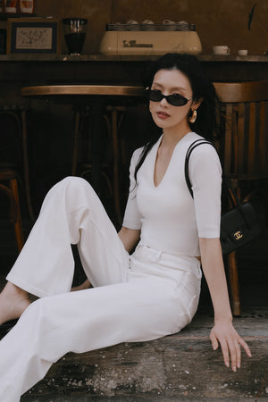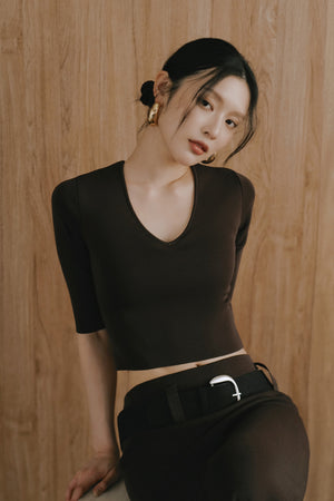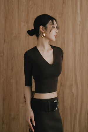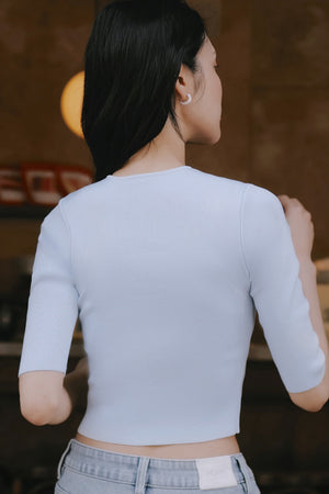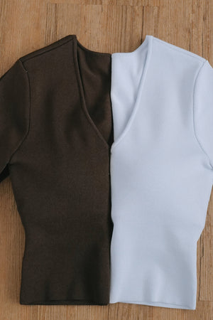Ice Knit V-Neck Half-Sleeve Bra Top