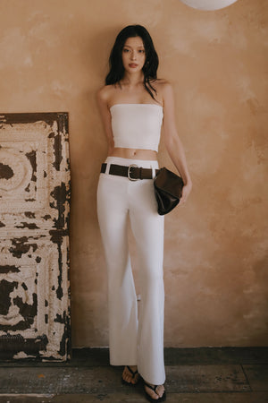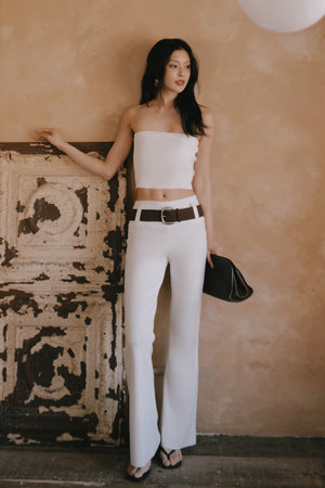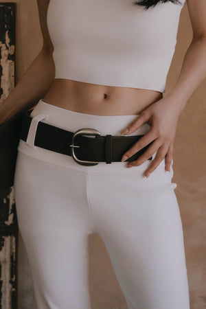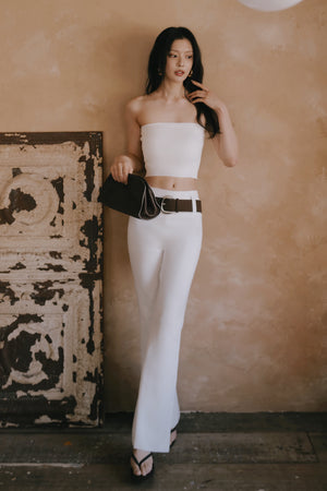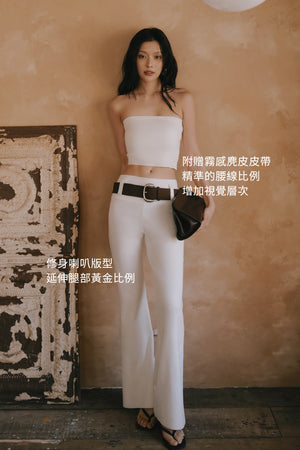 Ice Knit Wide-Waistband Sculpting Trousers with Suede Belt