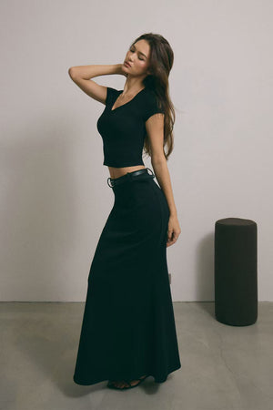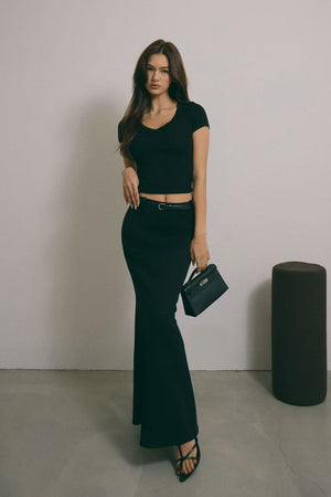 Home Bottom Warmth Fishtail Midi Skirt with Belt