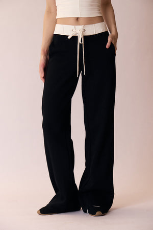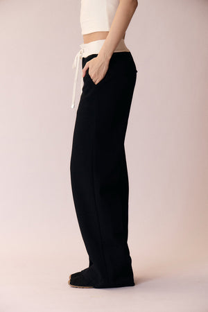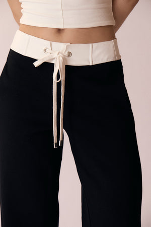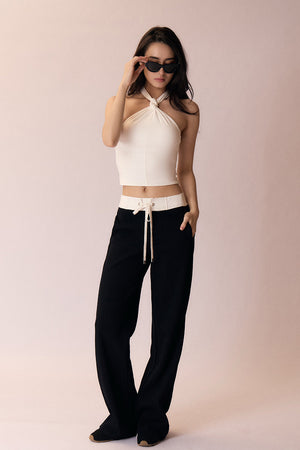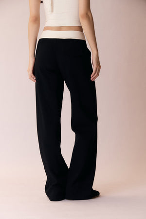 撞色腰頭綁帶西裝寬褲 Contrast Stitching Wide-Leg Trousers