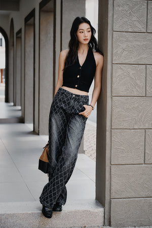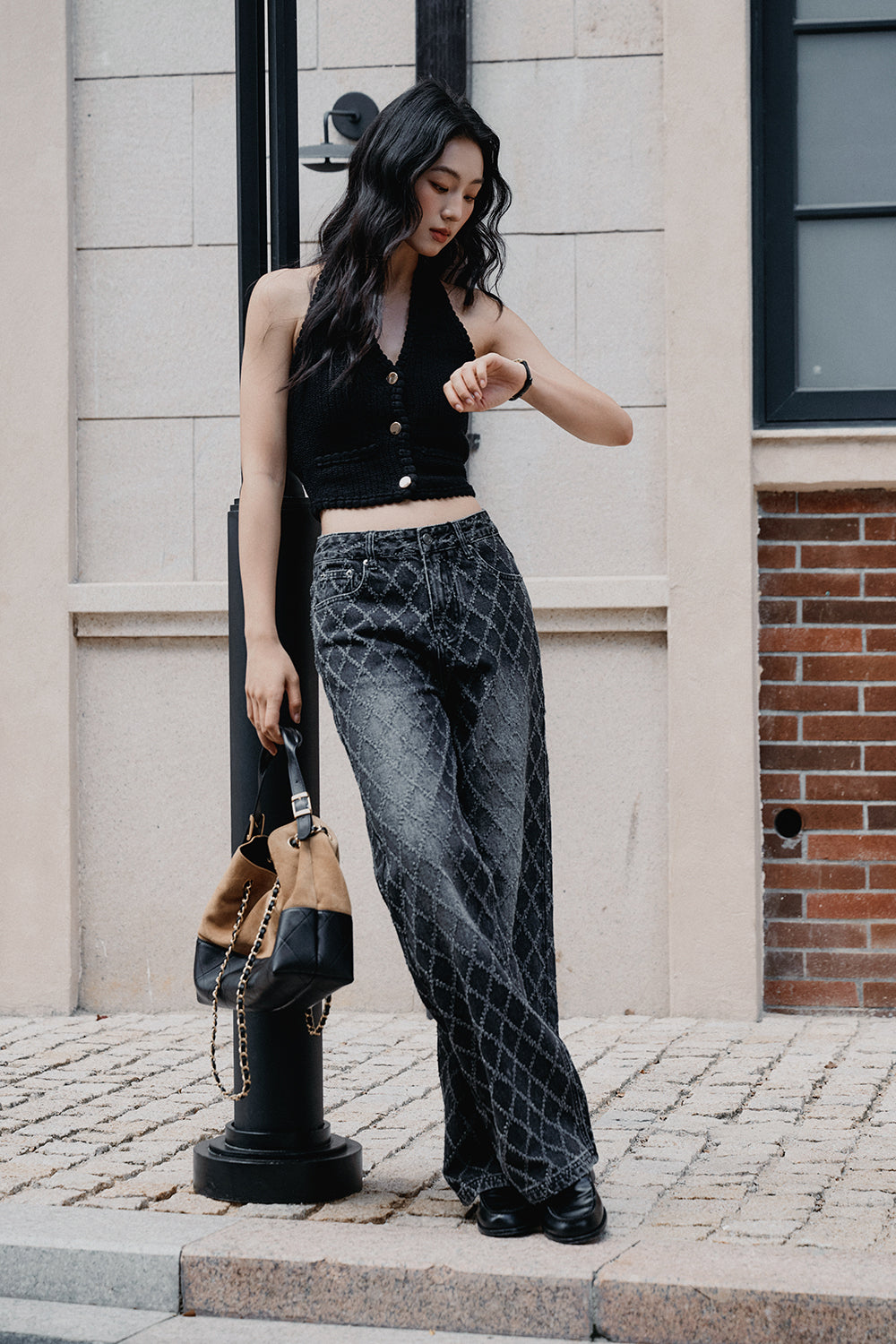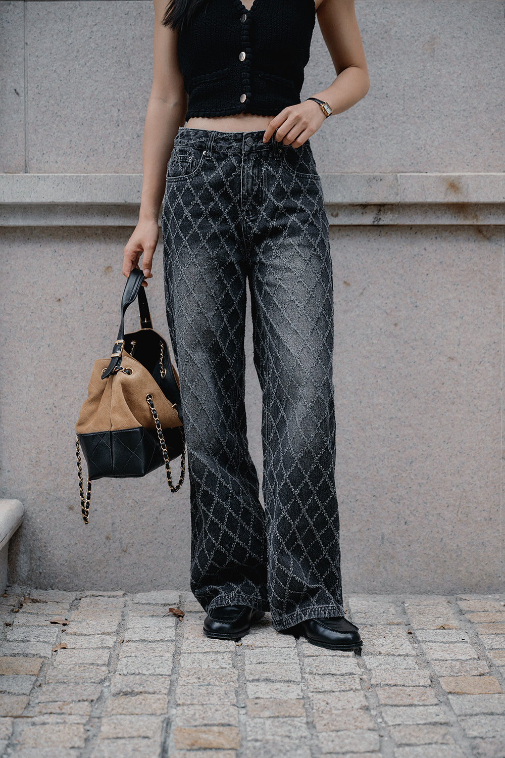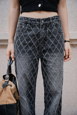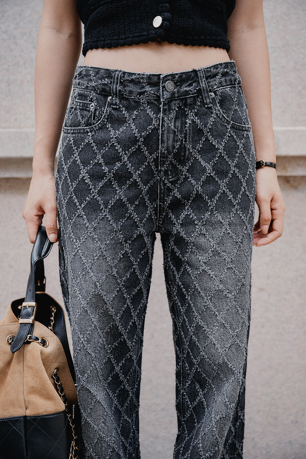 Home Bottom Diamond-Pattern Slightly Loose Jeans