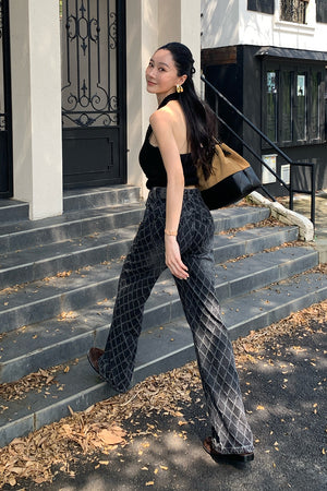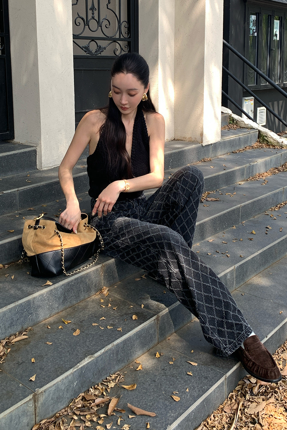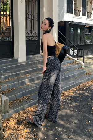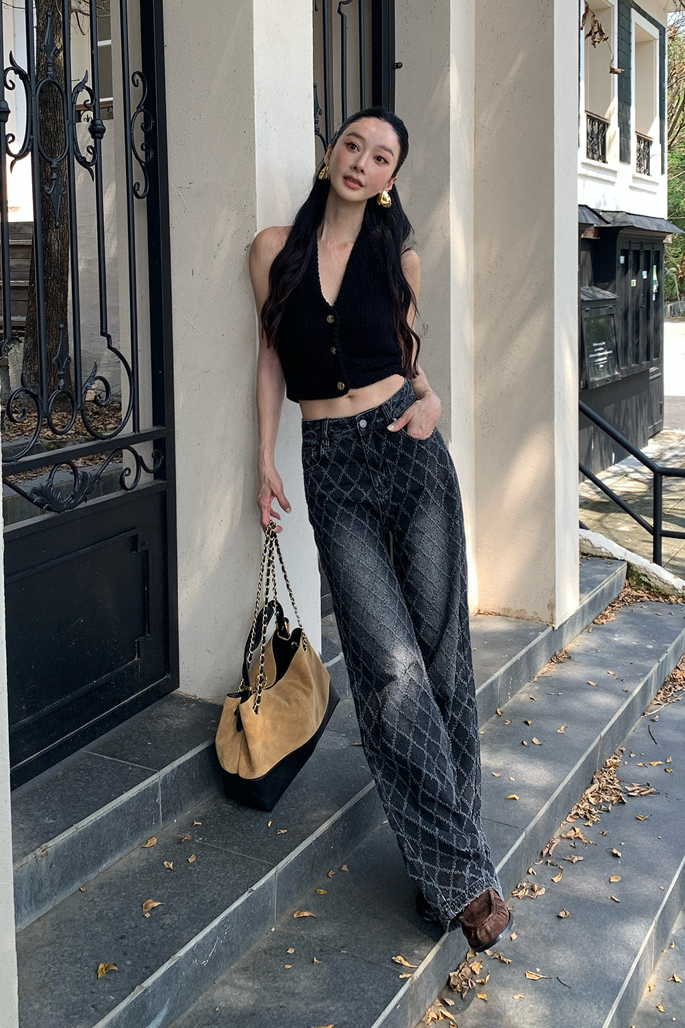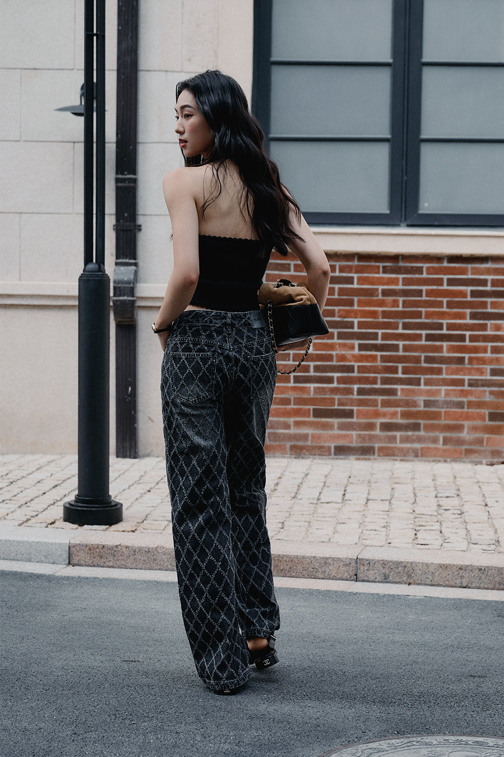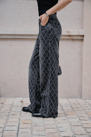 Home Bottom Diamond-Pattern Slightly Loose Jeans