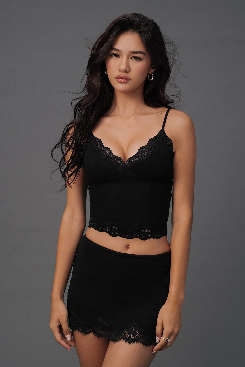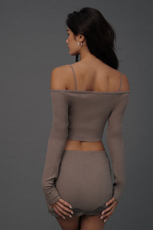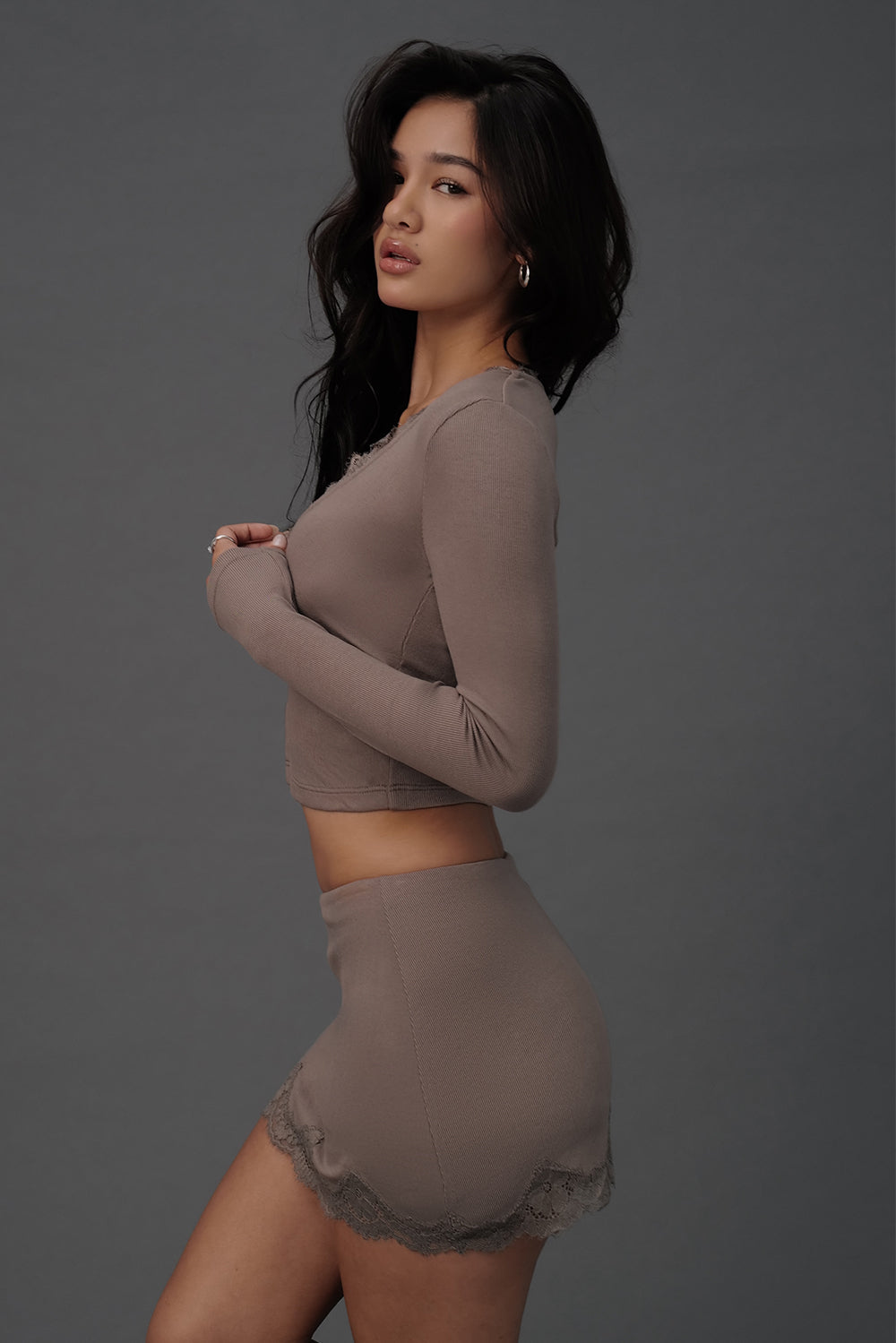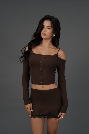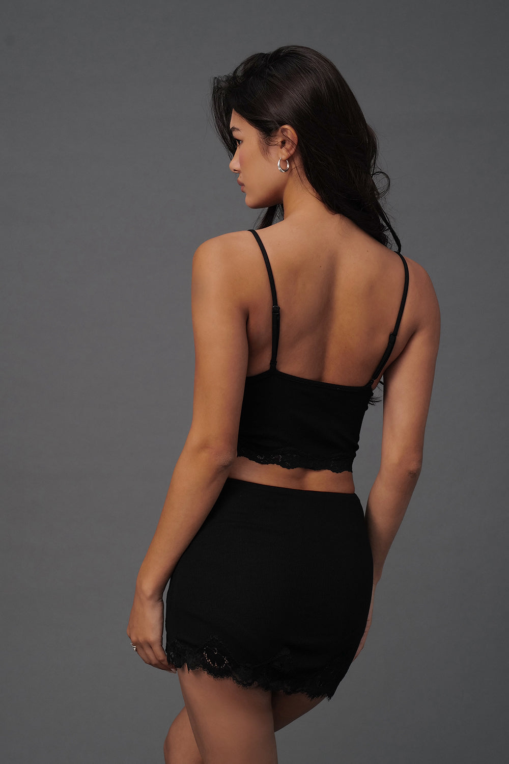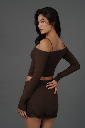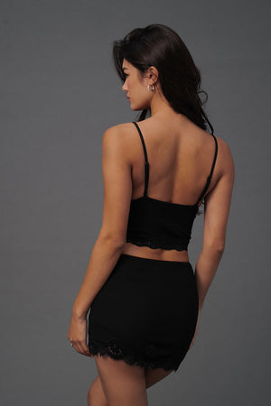 Elegant Rib Lace Trim Wide Lace Hem Mini Skirt
