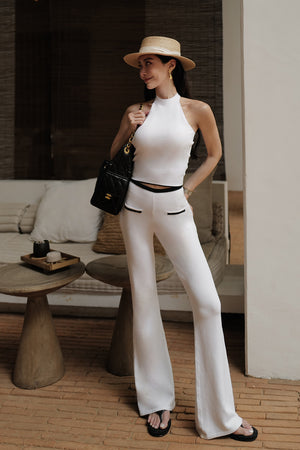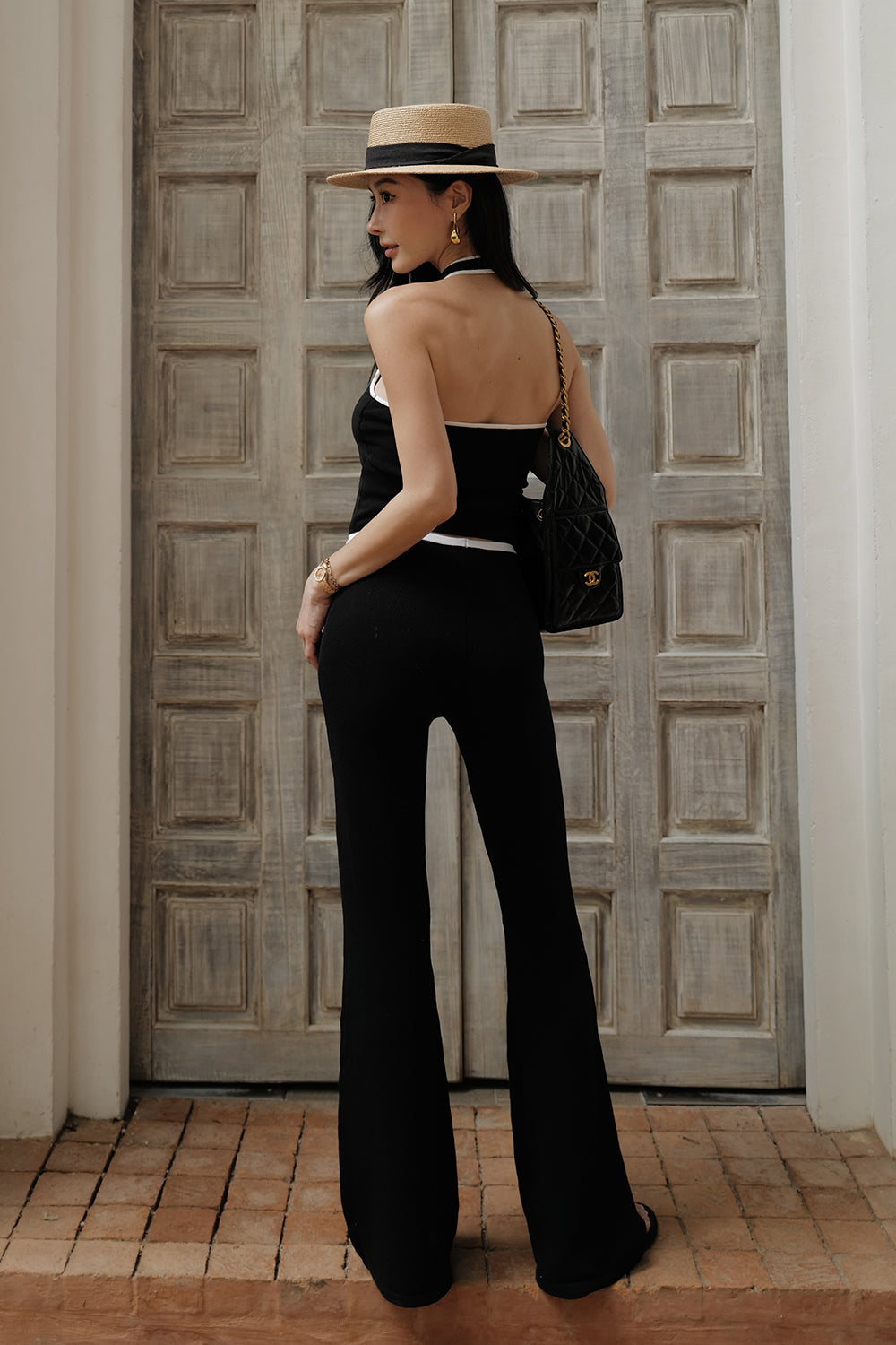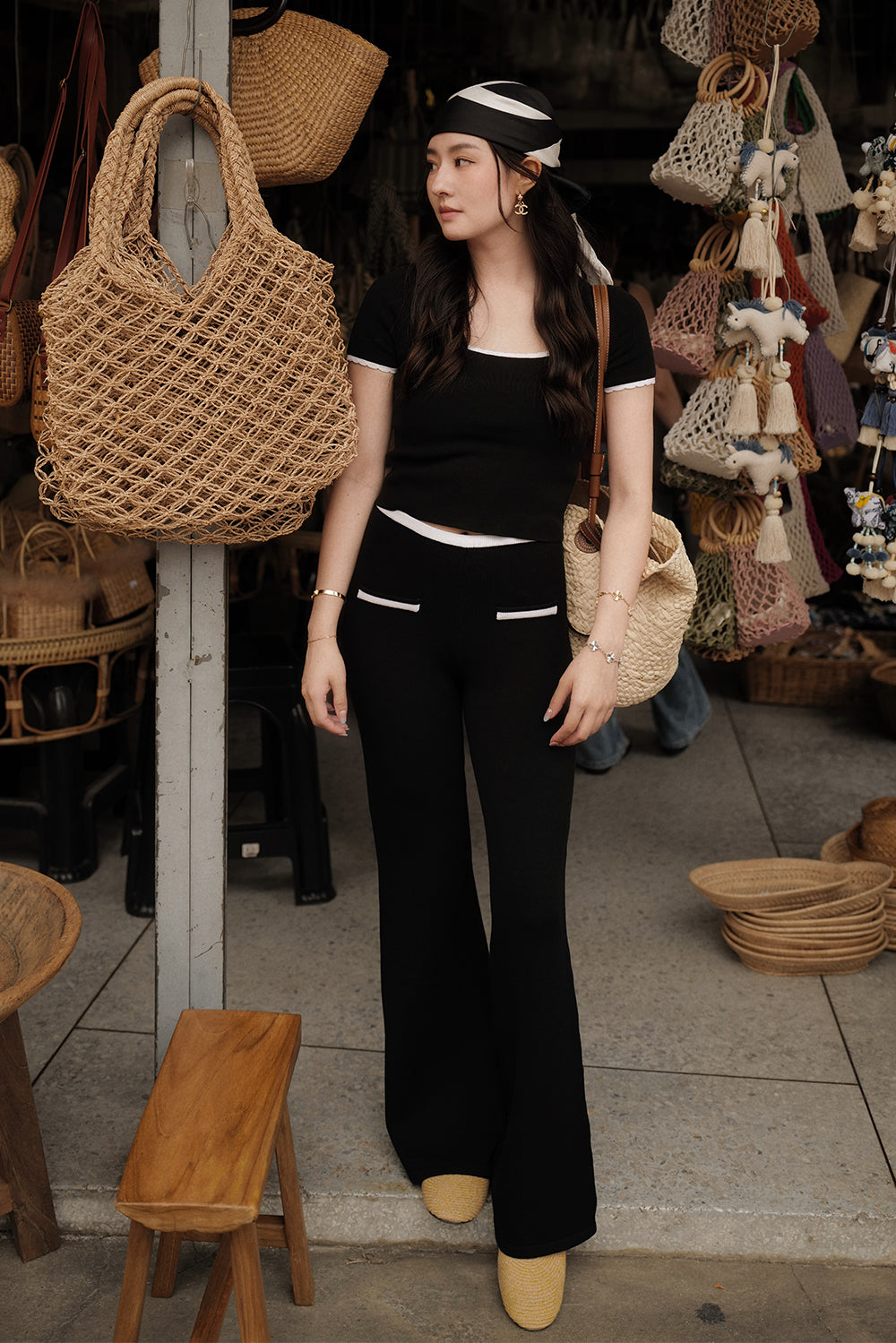 Ice Knit Contrast Trim Flare Pants With Faux Pockets