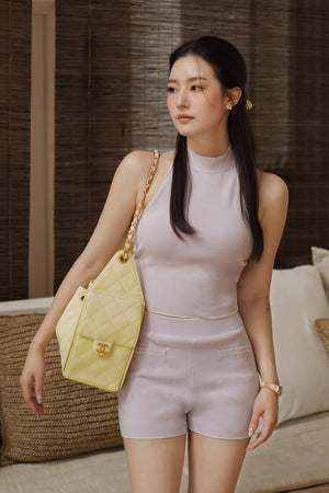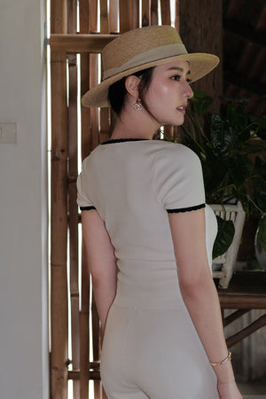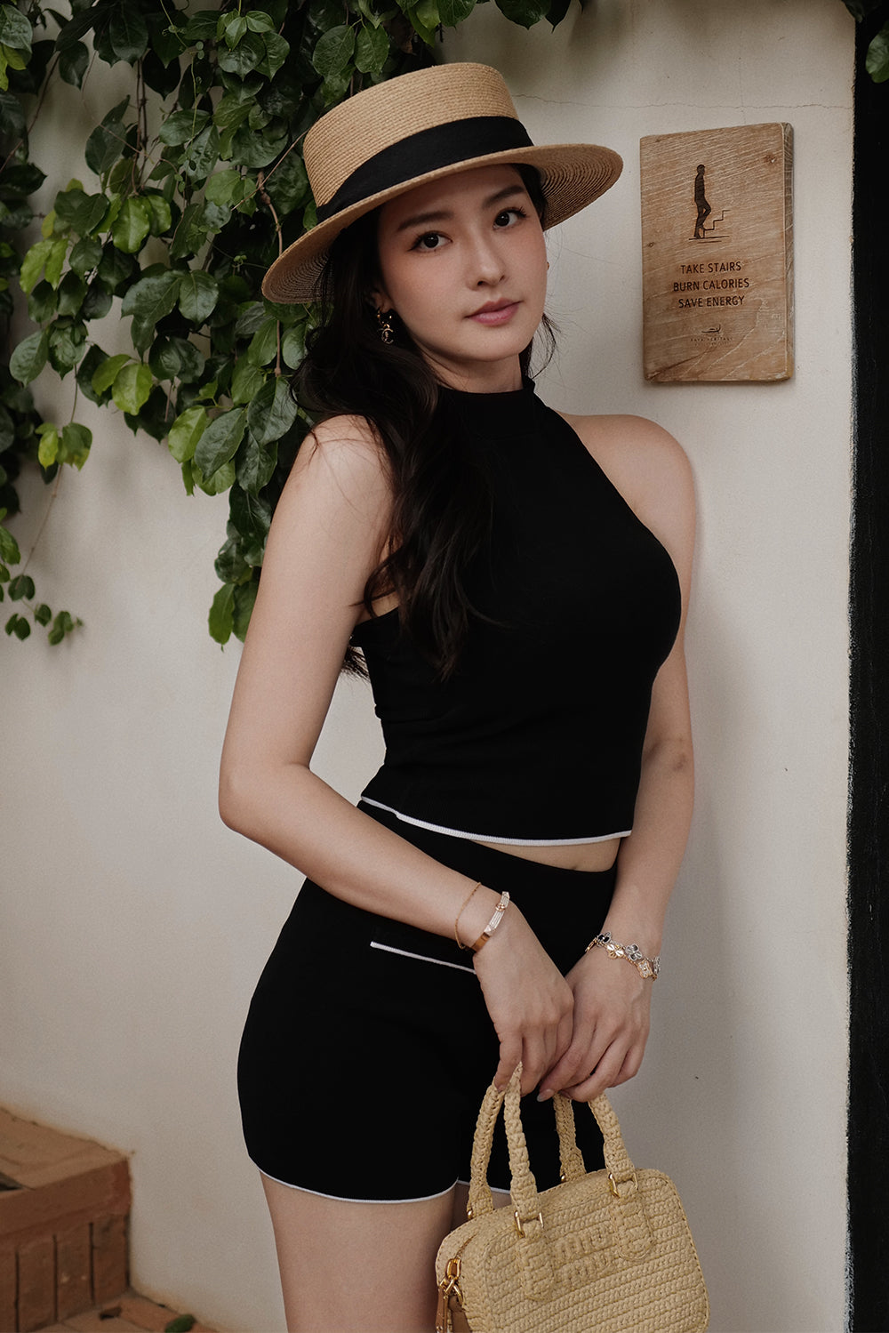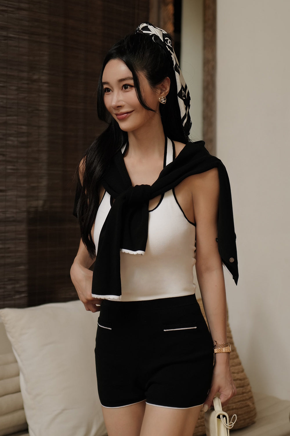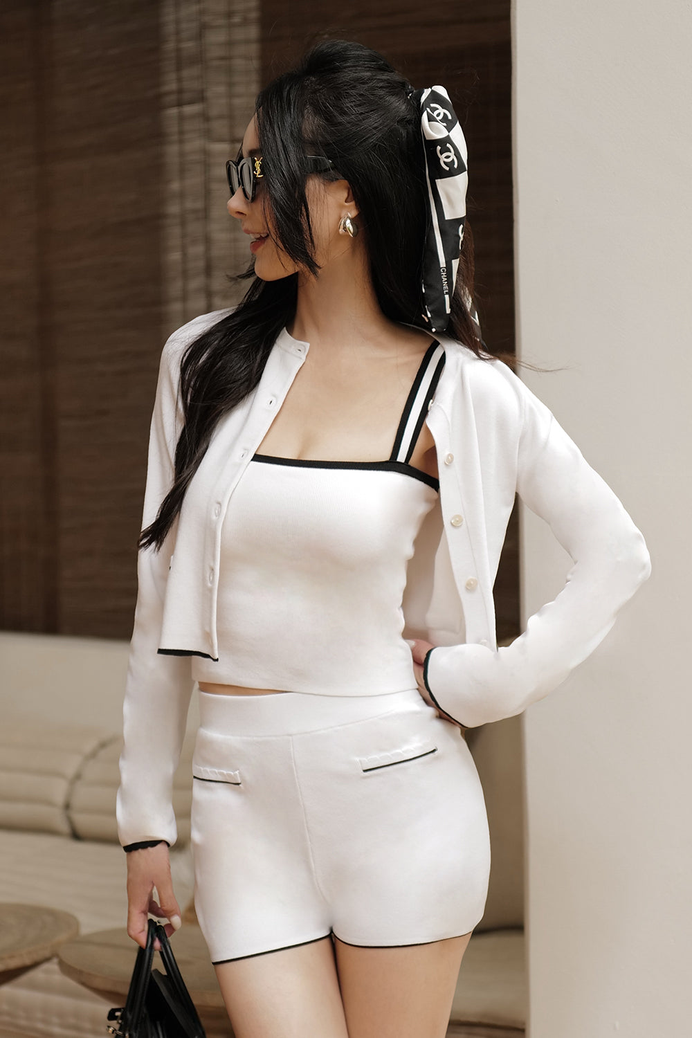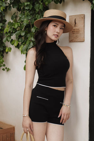 Ice Knit Contrast Trim Shorts With Faux Pockets