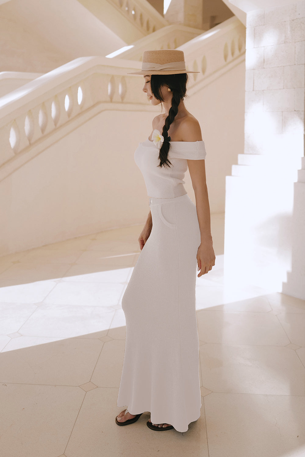 Ice Knit Faux Waistband Fishtail Maxi Skirt