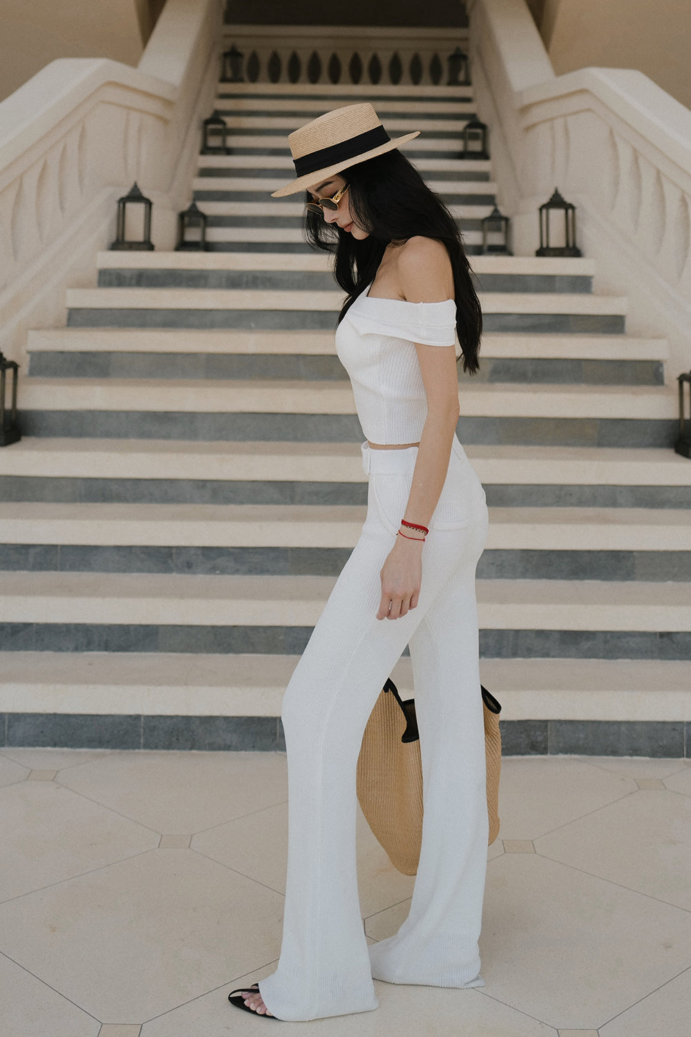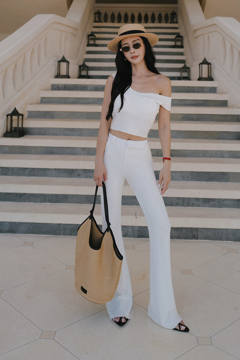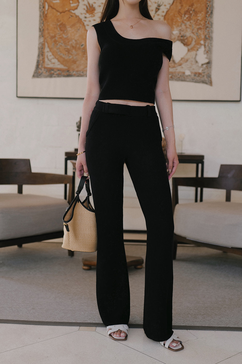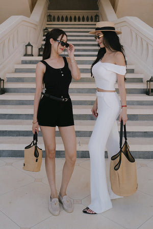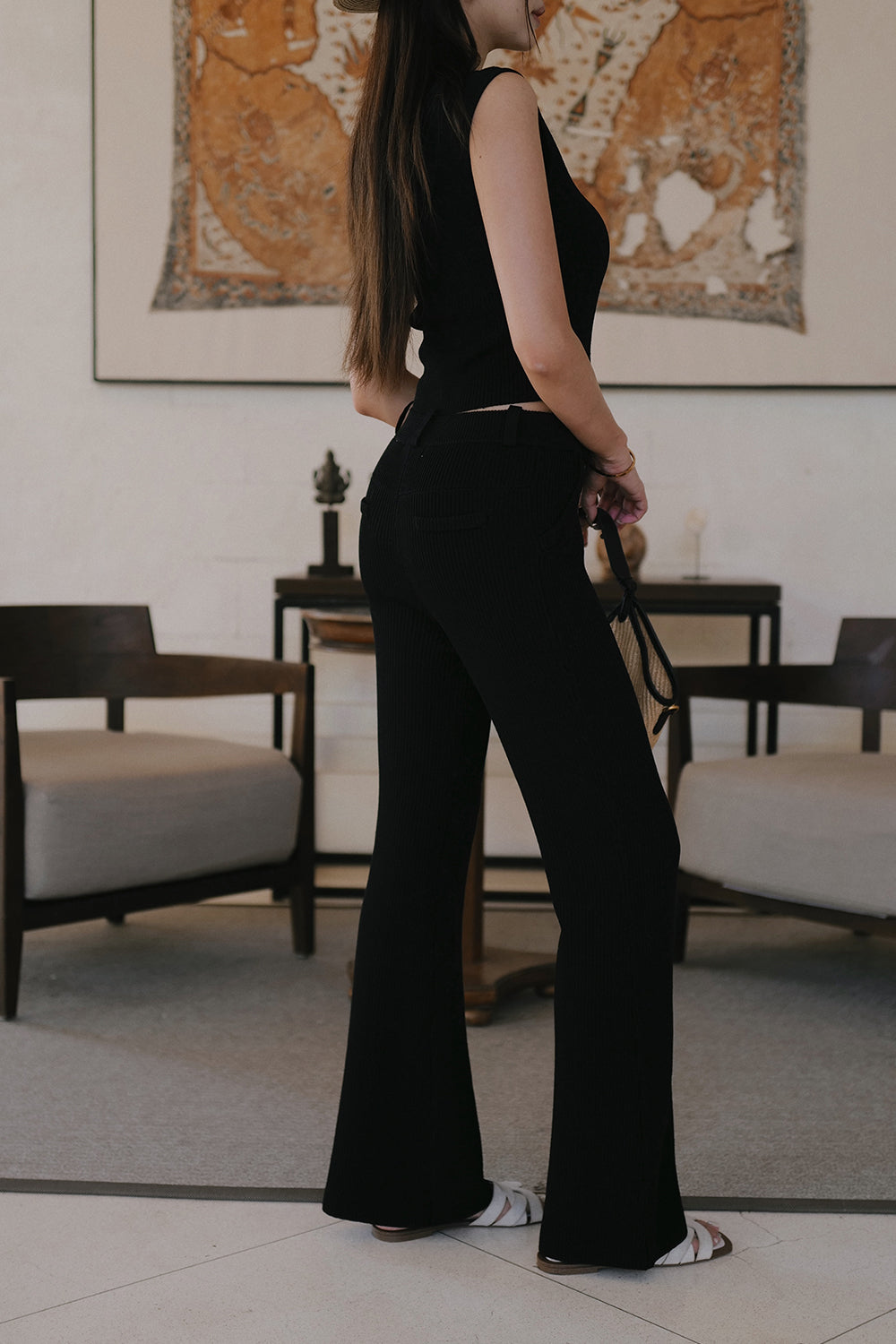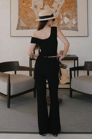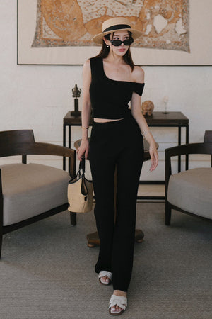 冰紗假腰頭長腿喇叭褲 Ice Knit Faux Waistband Flare Pants