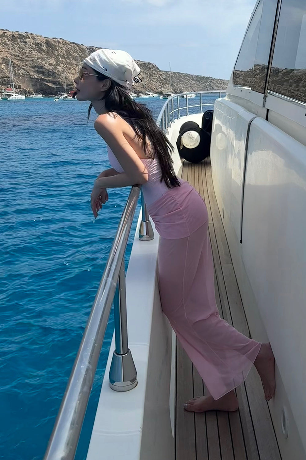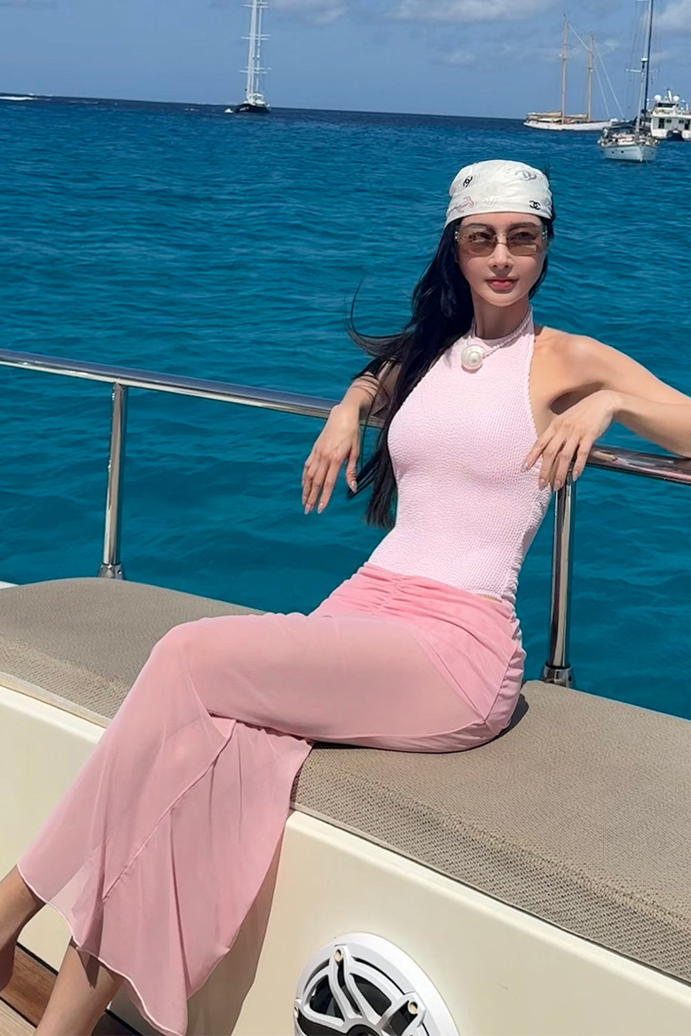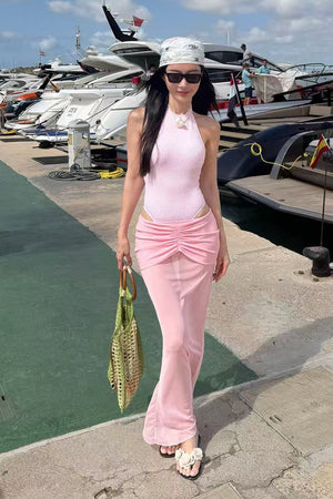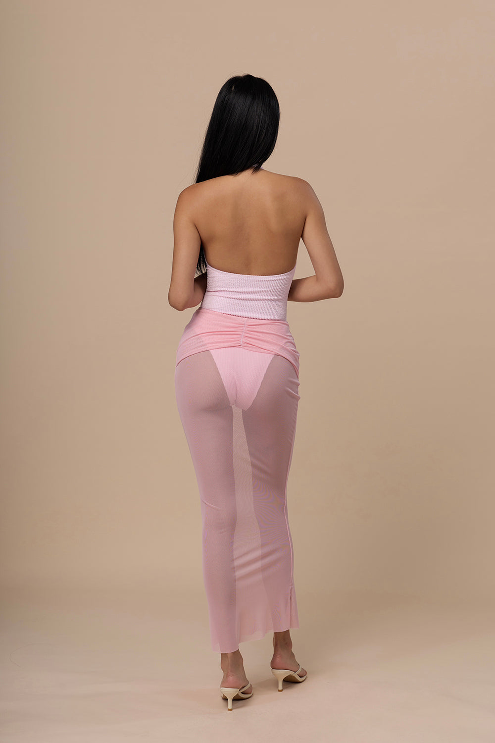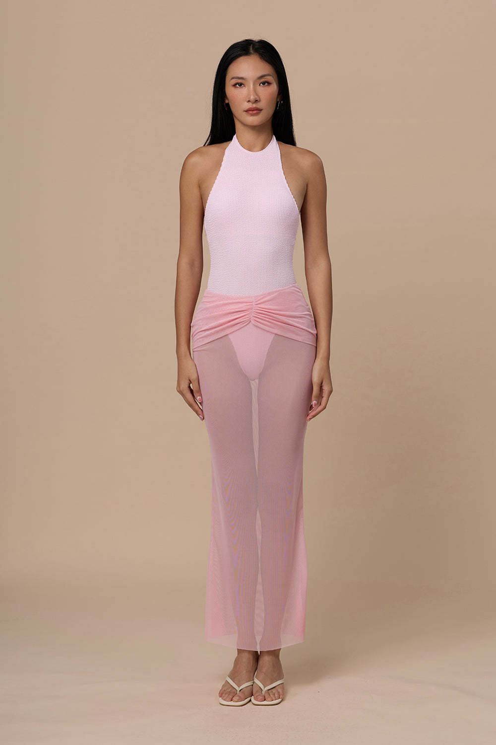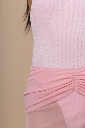 One-Piece Swimsuit with Sheer Mesh Skirt