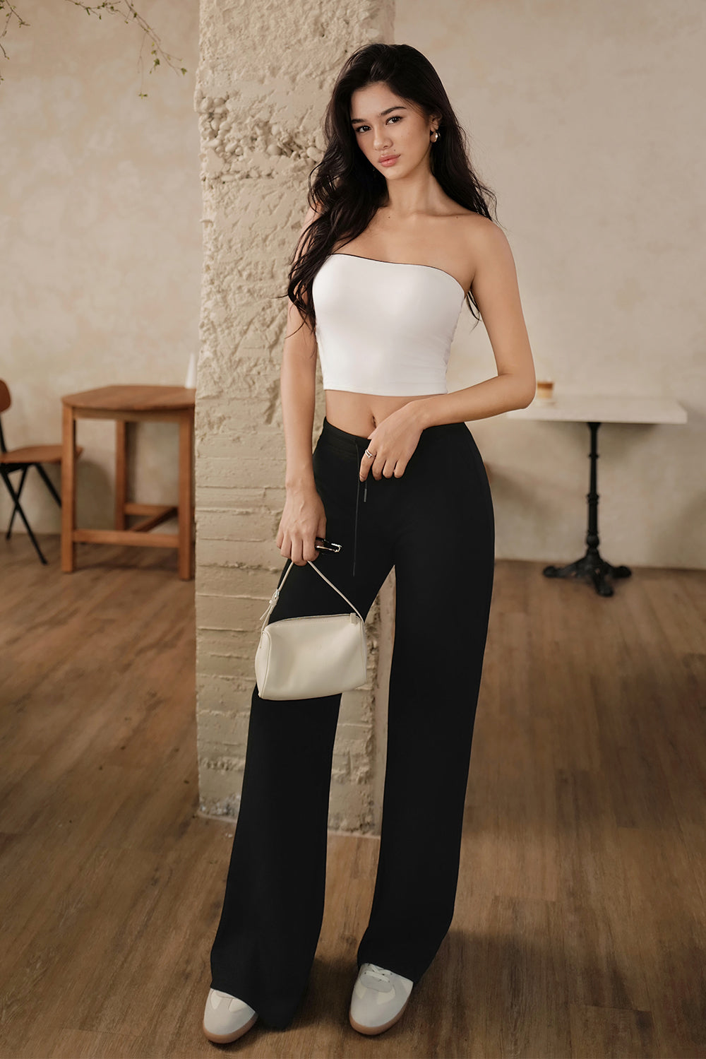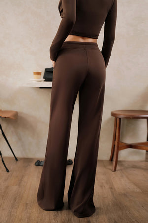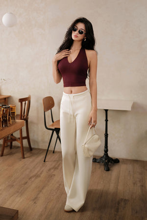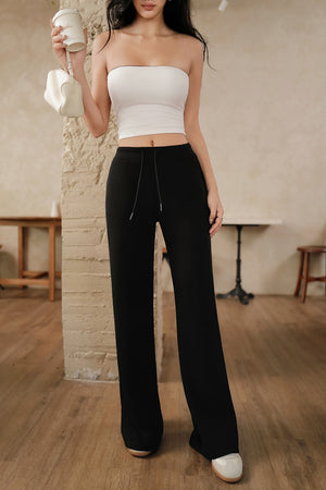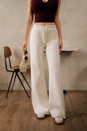 Peach Skin Drawstring Relaxed Wide-Leg Pants