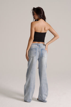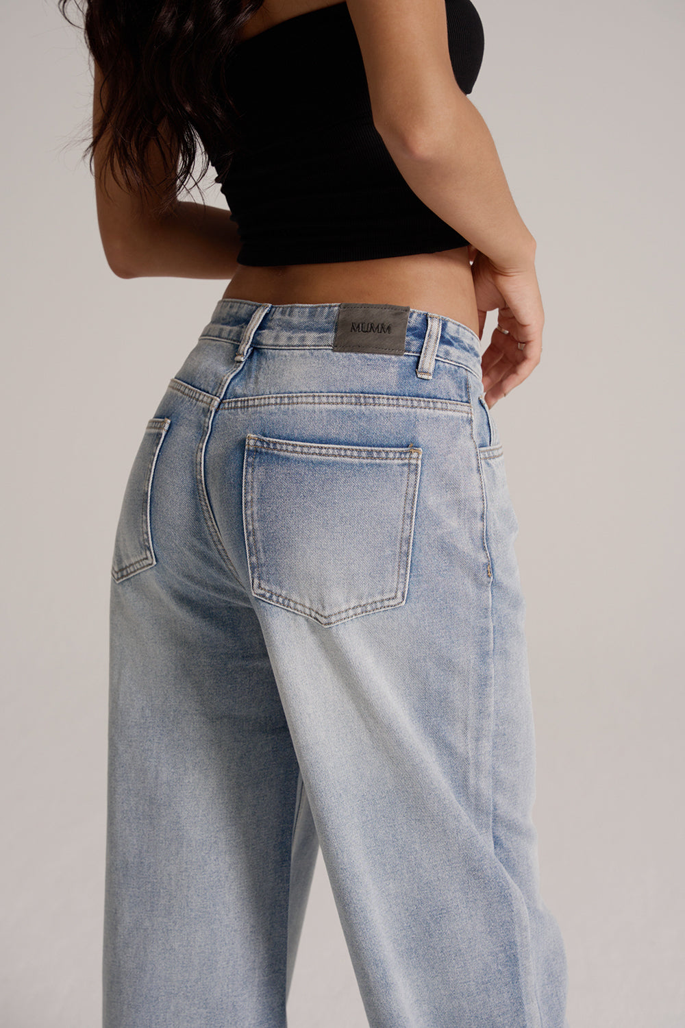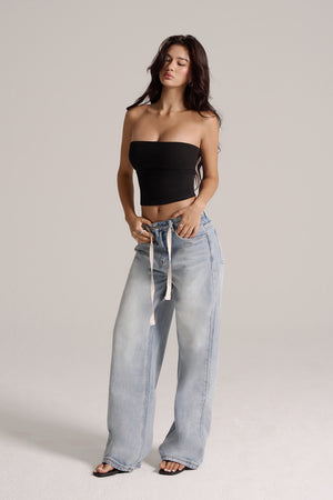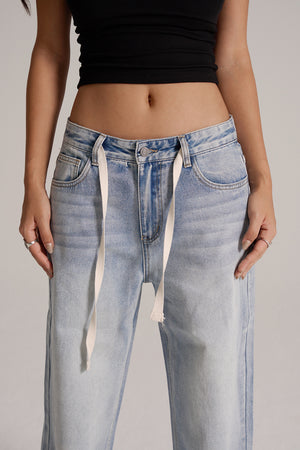 Slightly Loose Mid-Low Rise Tie-Waist Jeans